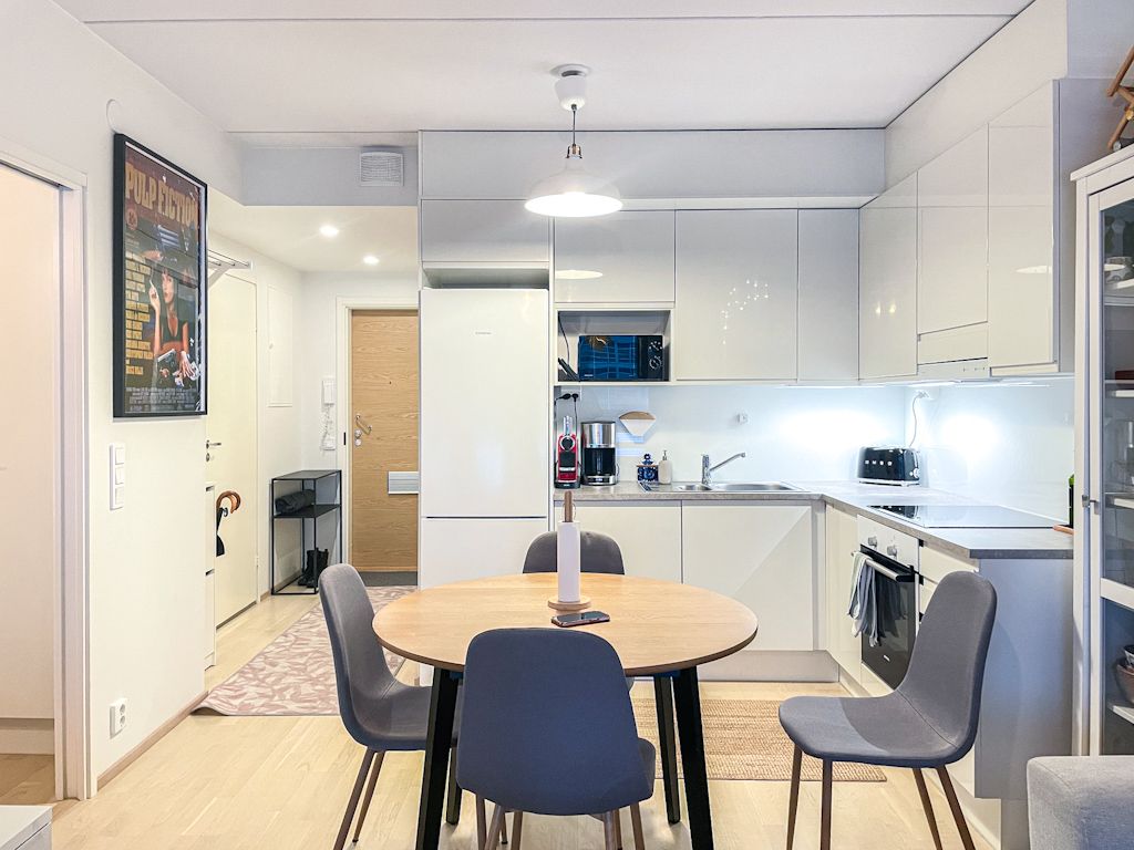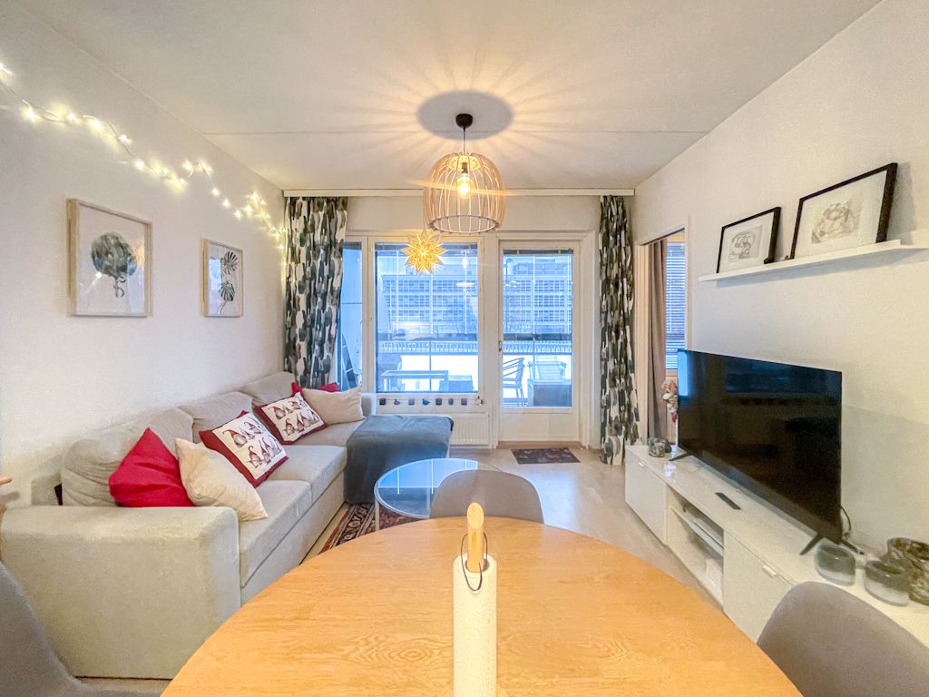 Tässä toisen kerroksen kodissa on valoa ja avaruutta. Moderni avokeittiö ja olohuone muodostavat yhteisen avoimen tilan. Avokeittiöstä löytyy kaikki tarvittava ja sielä on tilaa työskennellä. Olohuoneen kautta on kulku koko asunnon levyiselle lasitetulle parvekkeelle, jossa kelpaa nauttia vaikkapa aamukahvit. Kesällä parveke on kuin lisähuone. Kaappitilaa löytyy kivasti niin makuhuoneen kuin eteisenkin puolelta. Kylpyhuoneessa on pesukoneliitäntä.