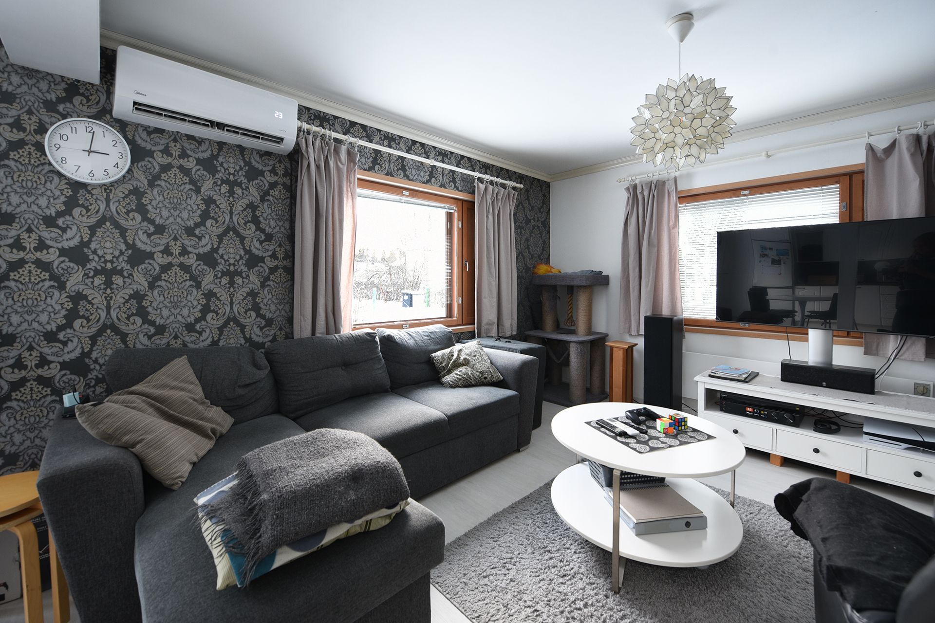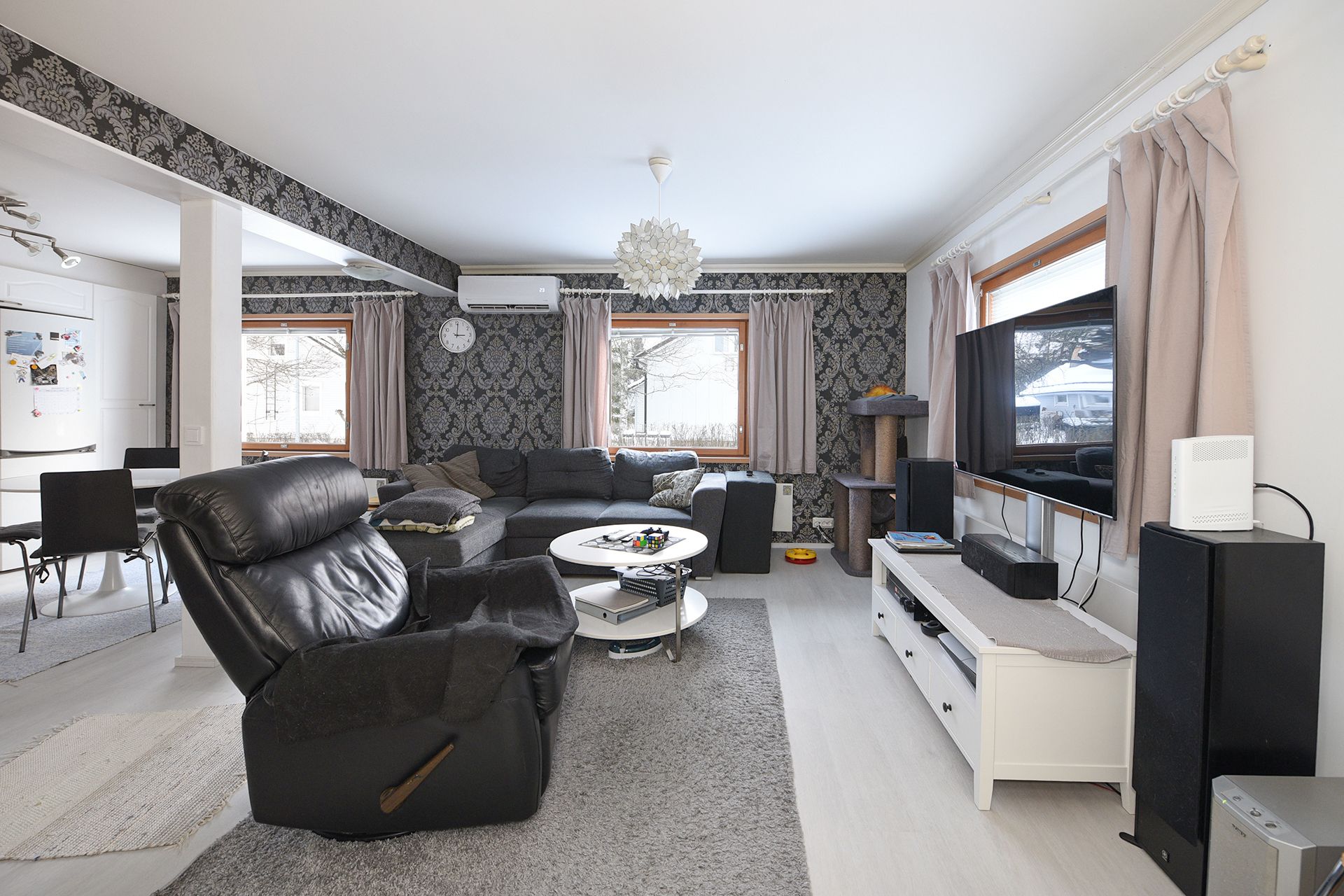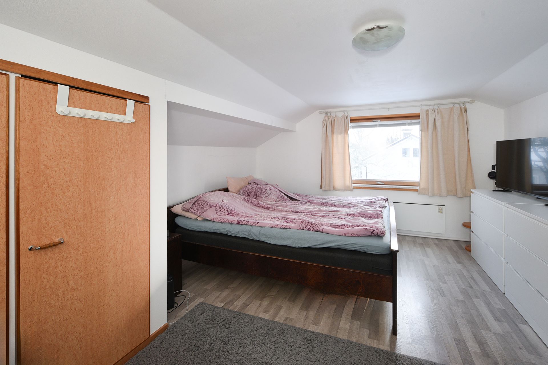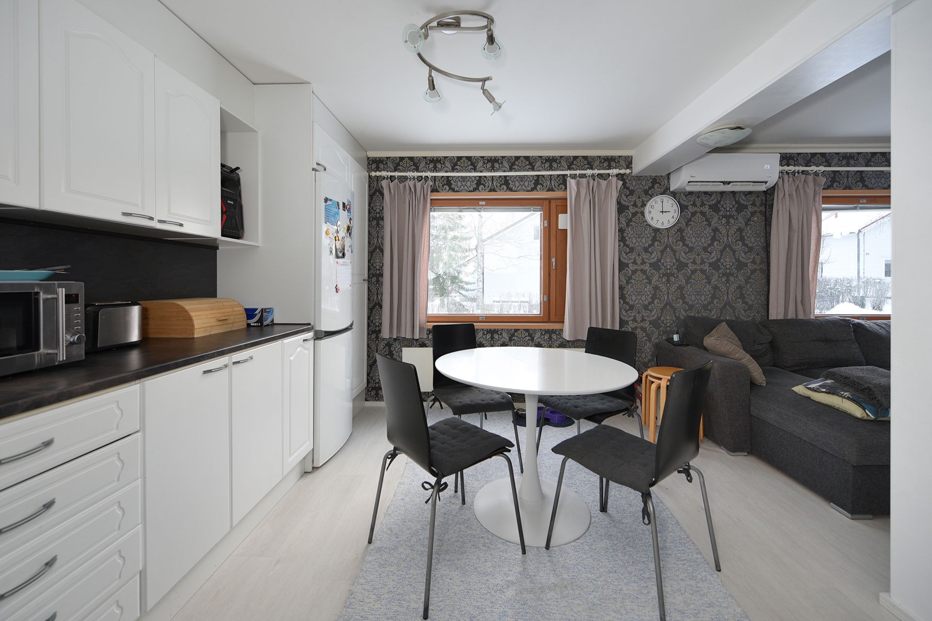 Alakerran tilat ovat noin 65 m² ja tarjoavat toimivan pohjaratkaisun arkeen. Yläkerrassa on lisäksi kaksi makuuhuonetta, joissa on rintamamiestalolle tyypillisesti matalampi huonekorkeus. Talo on sähkölämmitteinen, ja asumismukavuutta sekä energiatehokkuutta lisää ilmalämpöpumppu.