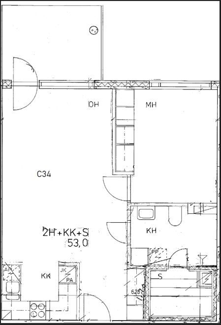 Kerrostalo, 53 m², 2h + kk + s + kph + lasitettu parveke