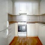 Ensimmäisen kerroksen valoisa ja siisti koti. Keittokomerosta löytyy mukavasti säilytystilaa. Asunnossa oma sauna ja lasitettu parveke.