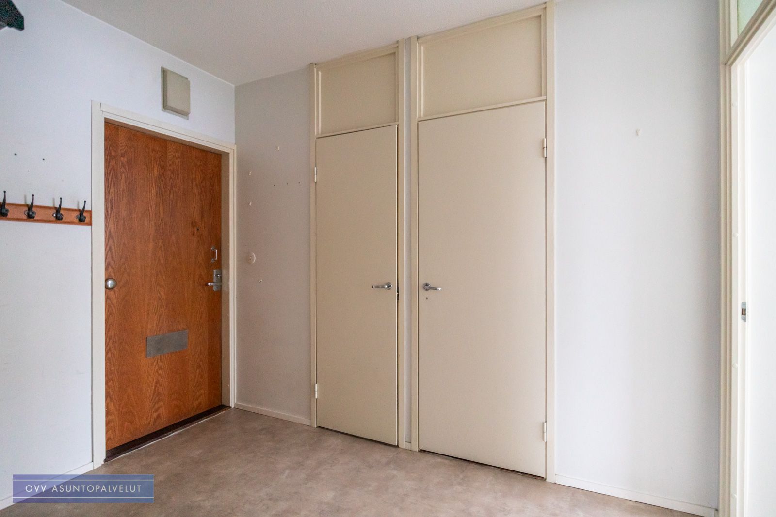 Reilun kokoinen eteinen ottaa asukkaat vastaan. Eteisen yhteydessä tilava vaatehuone. Isosta olohuoneesta käynti lasitetulle parvekkeelle