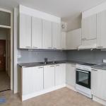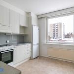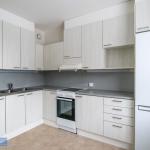 Asunnon keittiö uusittu joitain vuosia sitten nykyaikaiseksi. Sieltä löytyy hyvin kaappitilaa, siistit pinnat ja tilaa myös ruokailuryhmälle.