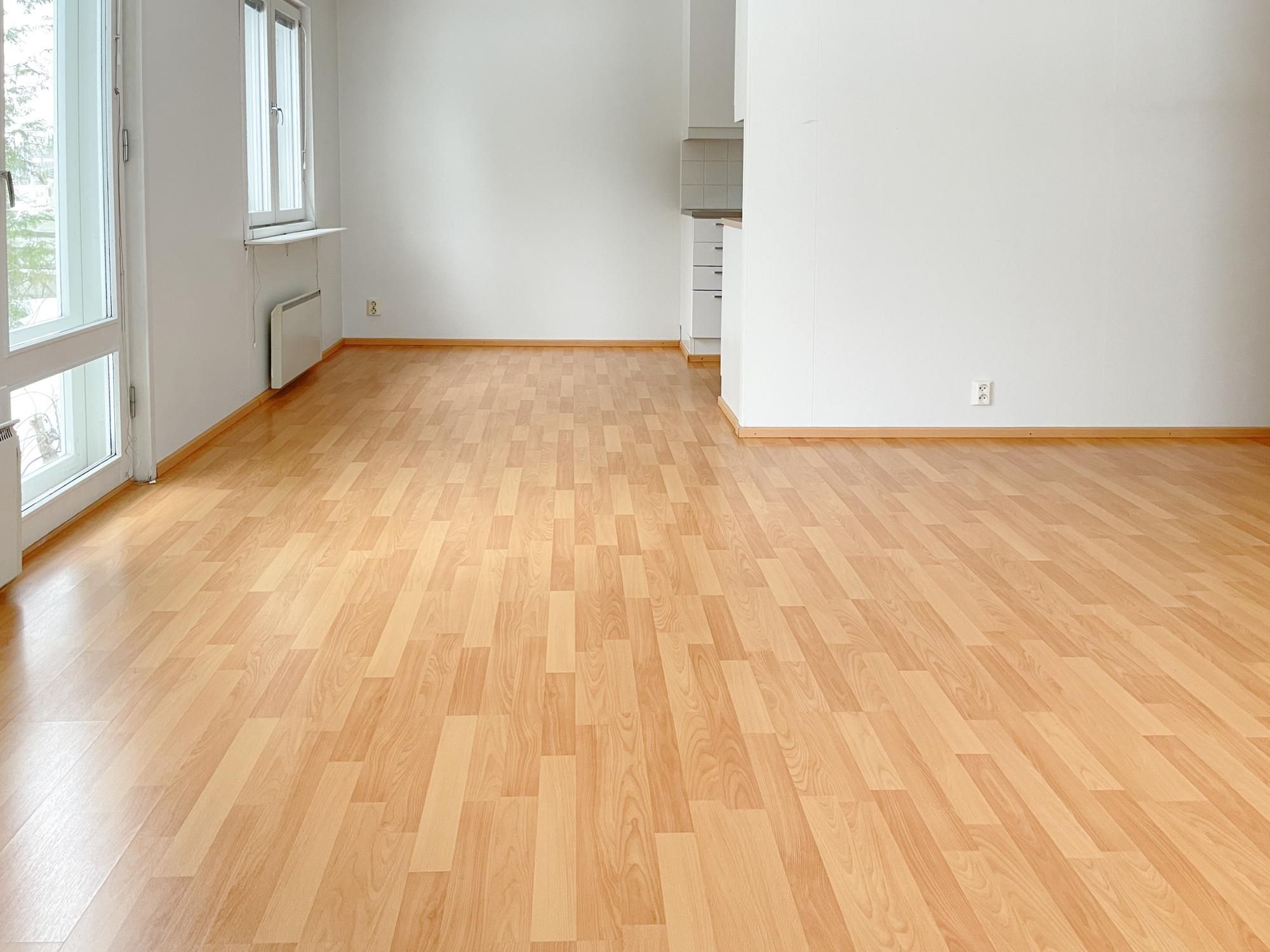 Luhtitalon ensimmäisen kerroksen siisti ja valoisa koti.