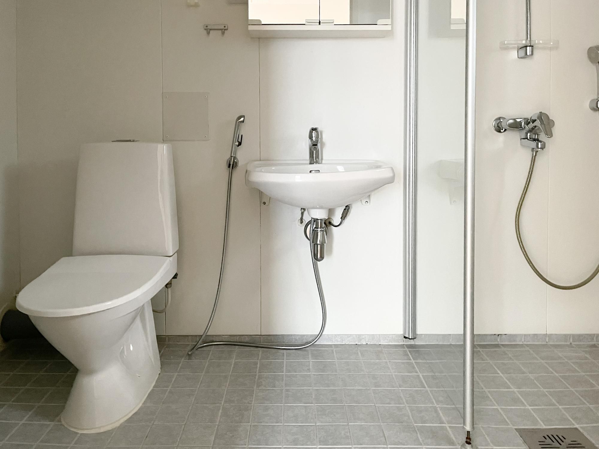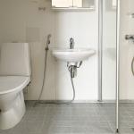 Keittiössä valmius astianpesukoneelle ja myös kylpyhuoneesta löytyy koneelle liitäntä.