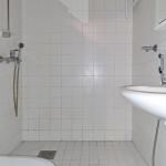 Eteisestä on käynti kylpyhuoneeseen, jossa on liitäntä pyykinpesukoneelle.