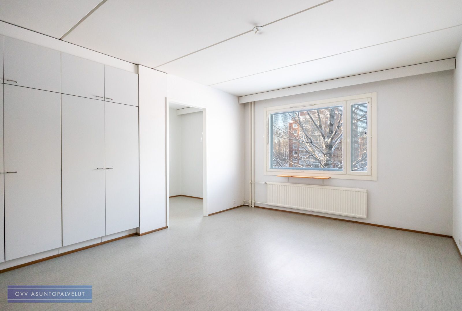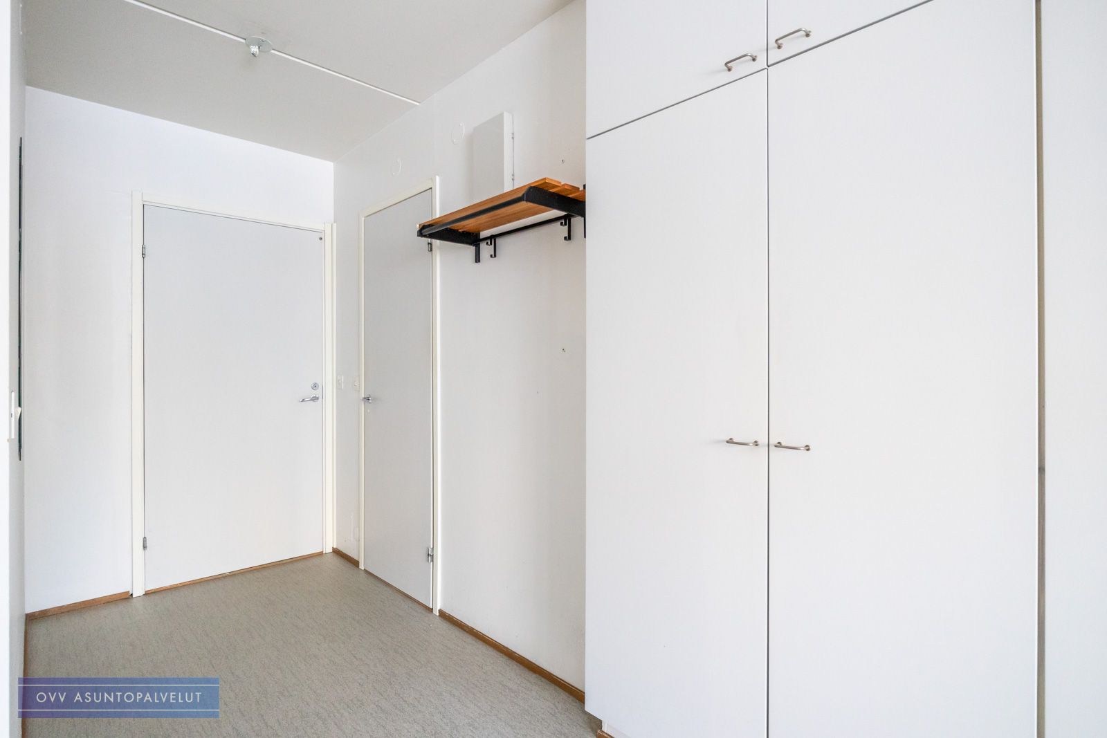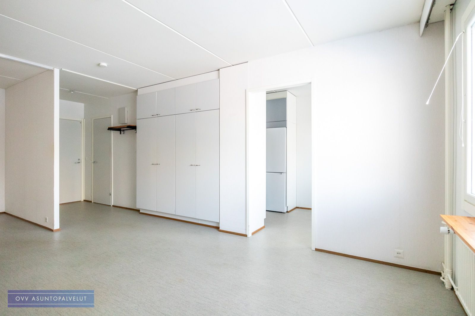 Alkovi tuo asuntoon viihtyisyyttä ja antaa mahdollisuuden erottaa makuutila verhoilla muusta huoneesta – näin saat lisää yksityisyyttä ja rauhaa arkeen. Eteisen yhteydessä on runsaasti kaappitilaa, joten säilytysratkaisut ovat kunnossa.