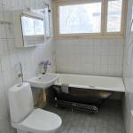 Kylpyhuoneessa amme ja pesukoneliitäntä.