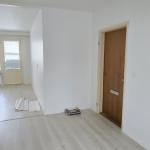 Laminaattilattiat, seinät maalipinnoin, ikkunoissa sälekaihtimet.
