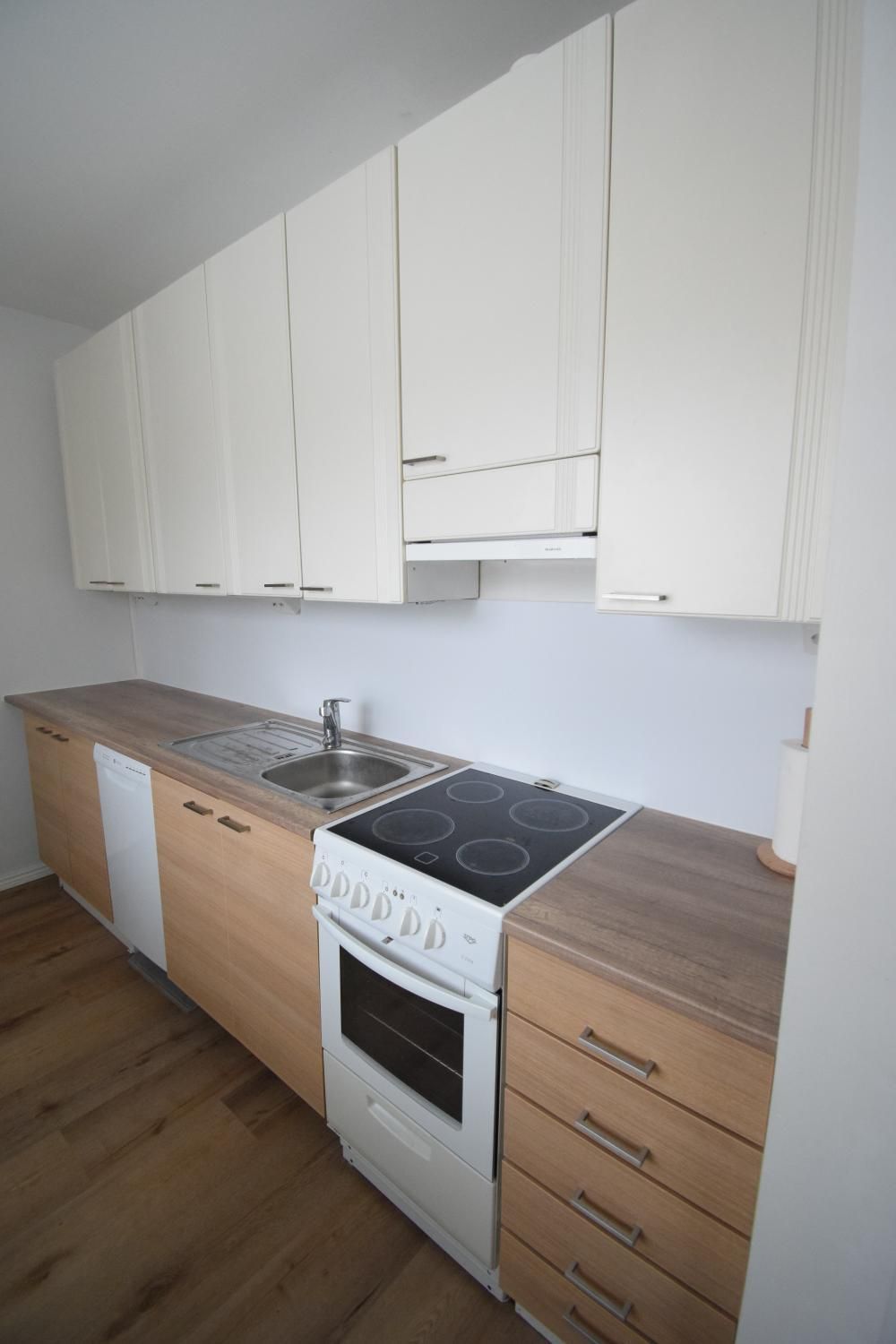 Asunnossa on remontoitu keittiö, josta löytyy astianpesukone sekä hyvin tilaa pienelle ruokapöydälle. Eteisessä on käytännöllinen liukuovikaapisto. Kylpyhuoneessa on varaus pyykinpesukoneelle.