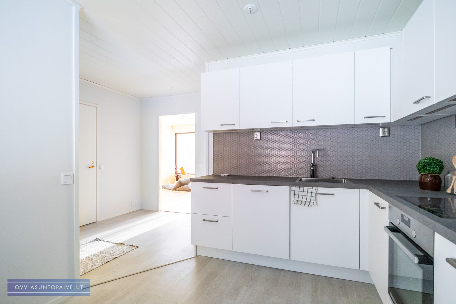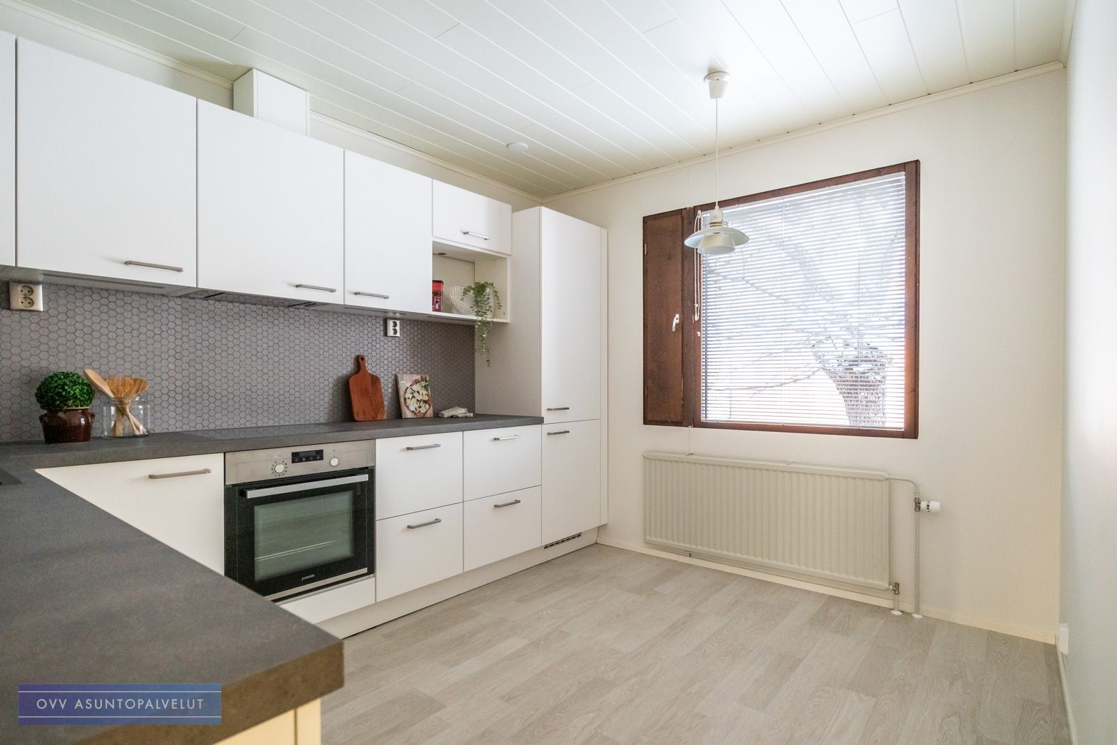 Asunto on kauttaaltaan remontoitu viime vuosina. Upea nykyaikainen keittiö tarjoaa asukkaille kaiken tarpeellisen arjen kokkailuihin ja tilaa ruokailuryhmälle.