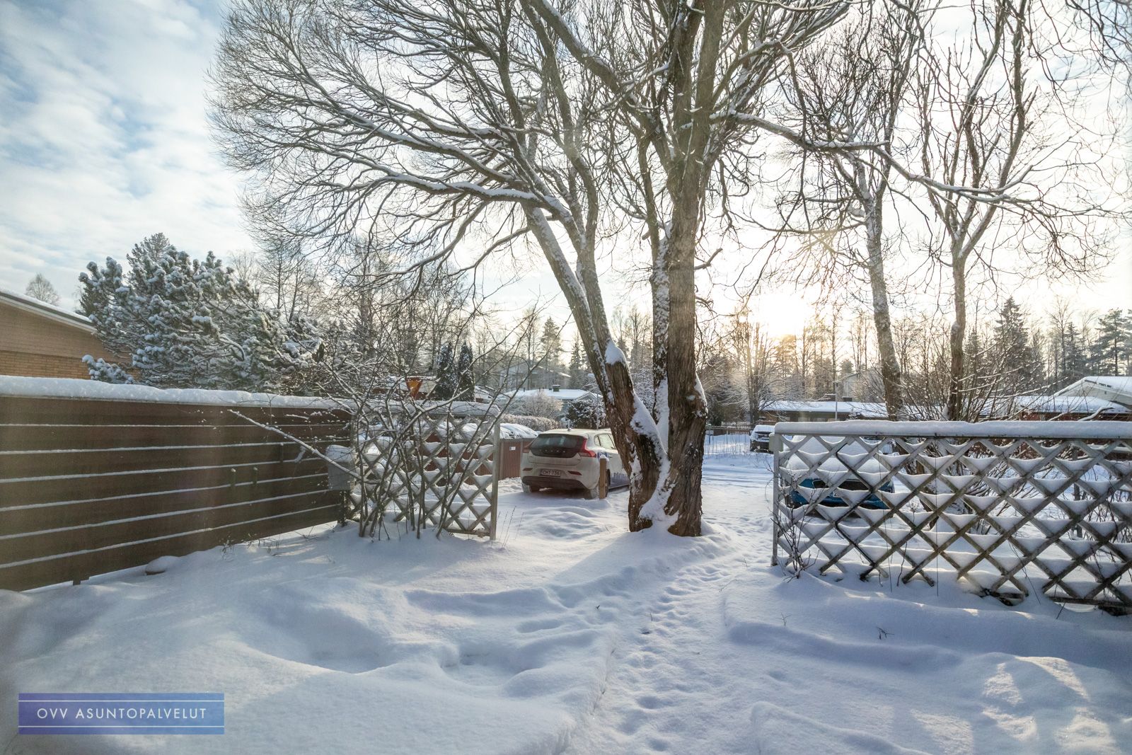 Olohuoneesta käynti omalle pihalle, jonka läpi voi tarvittaessa kulkea asunnon kohdalla olevalle autopaikalle, joka sisältyy vuokraan.