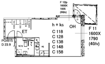 Kerrostalo, 42 m², 1h + kk + kph + parveke