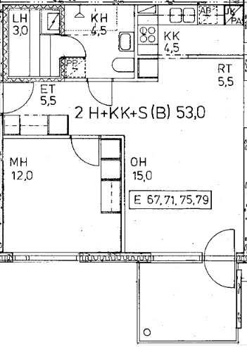 Kerrostalo, 53 m², 2h + kk + kph + s + parveke