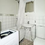 Kylpyhuoneessa valmiina kapea päältä täytettävä pyykinpesukone asukkaan käytössä. Kylpyhuoneessa amme.