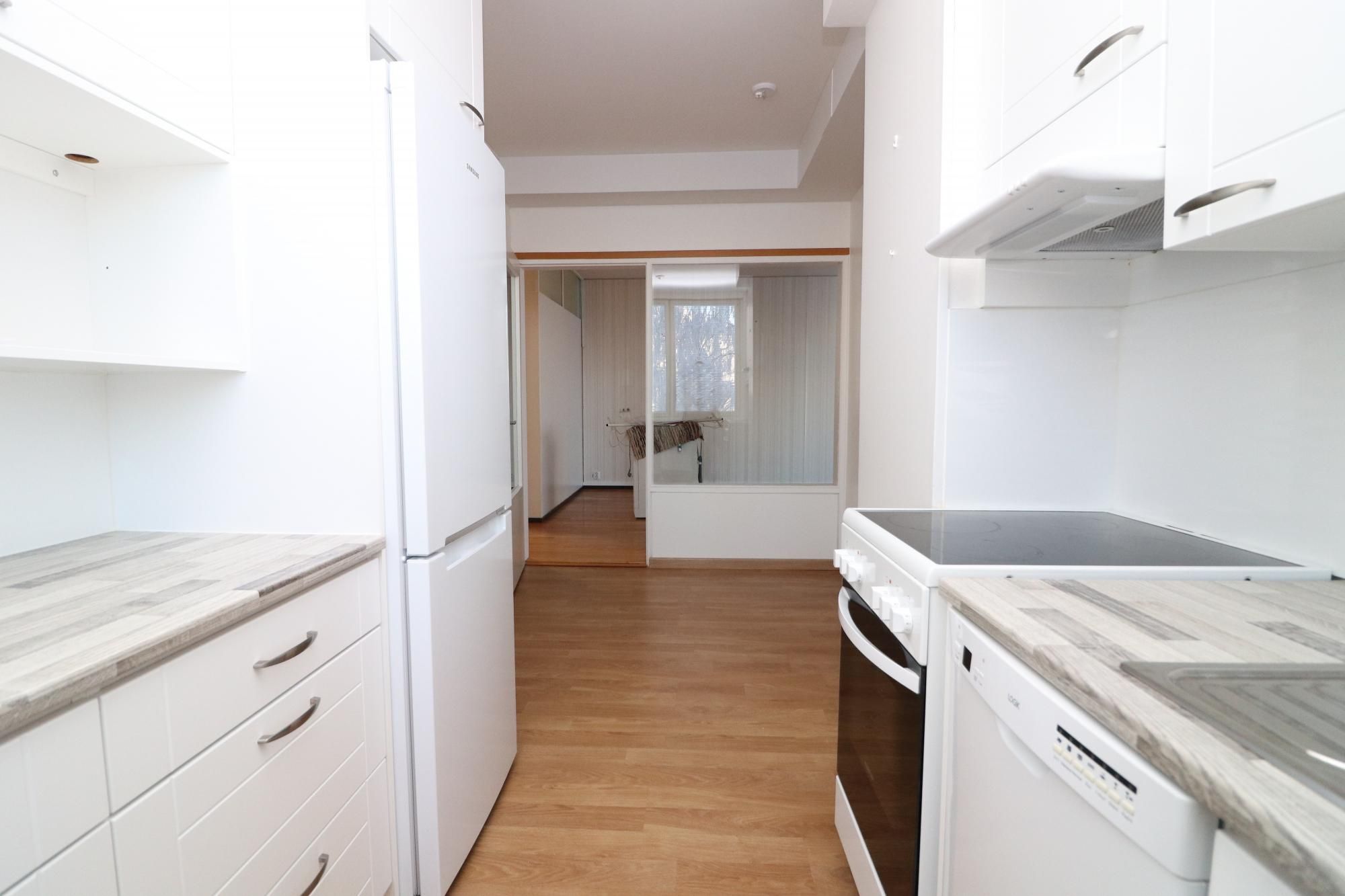 Juuri putkiremontista valmistuvasta taloyhtiöstä parvekkeellinen kolmio Kuopion Puijonlaaksossa, loistavien ulkoilumaastojen läheisyydessä. Torille matkaa noin 2,5 kilometriä ja lähimpään kauppaan vain kolmisensataa metriä. Keittiössä liesi, liesituuletin, jääkaappipakastin sekä astianpesukone. Kylpyhuone ja erillinen wc remontoitu putkiremontin yhteydessä. Kylpyhuoneessa liitäntä pyykinpesukoneelle. Kaappitilaa makuuhuoneissa ja eteisessä. Kohde ei sovellu välikerrosten rappujen vuoksi liikuntarajoitteiselle. Puijonlaakson palvelut kävelymatkan etäisyydellä, hyvät julkiset kulkuyhteydet, KYS lähellä ja opistot kävelymatkan päässä. Puhtaat luottotiedot vaaditaan. Huoneisto vuokrataan mielellään pidemmäksi aikaa, mutta kuitenkin vähintään vuodeksi.