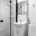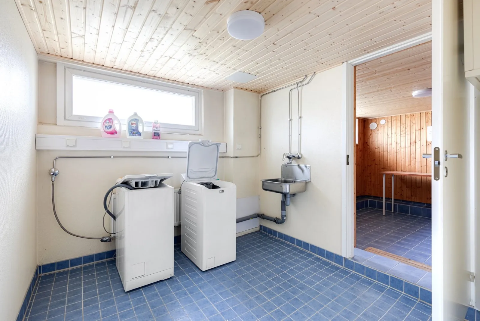 Kylpyhuone on täysin remontoitu putkiremontin yhteydessä. Kylpyhuoneeseen ei mahdu pesukonetta, mutta vuokraan sisältyy mahdollisuus sijoittaa oma pesukone talon pohjakerroksessa sijaitsevaan pyykki-, ja kuivaushuoneeseen, joka on vapaasti asukkaiden käytettävissä ympäri vuorokauden ilman varauksia.
