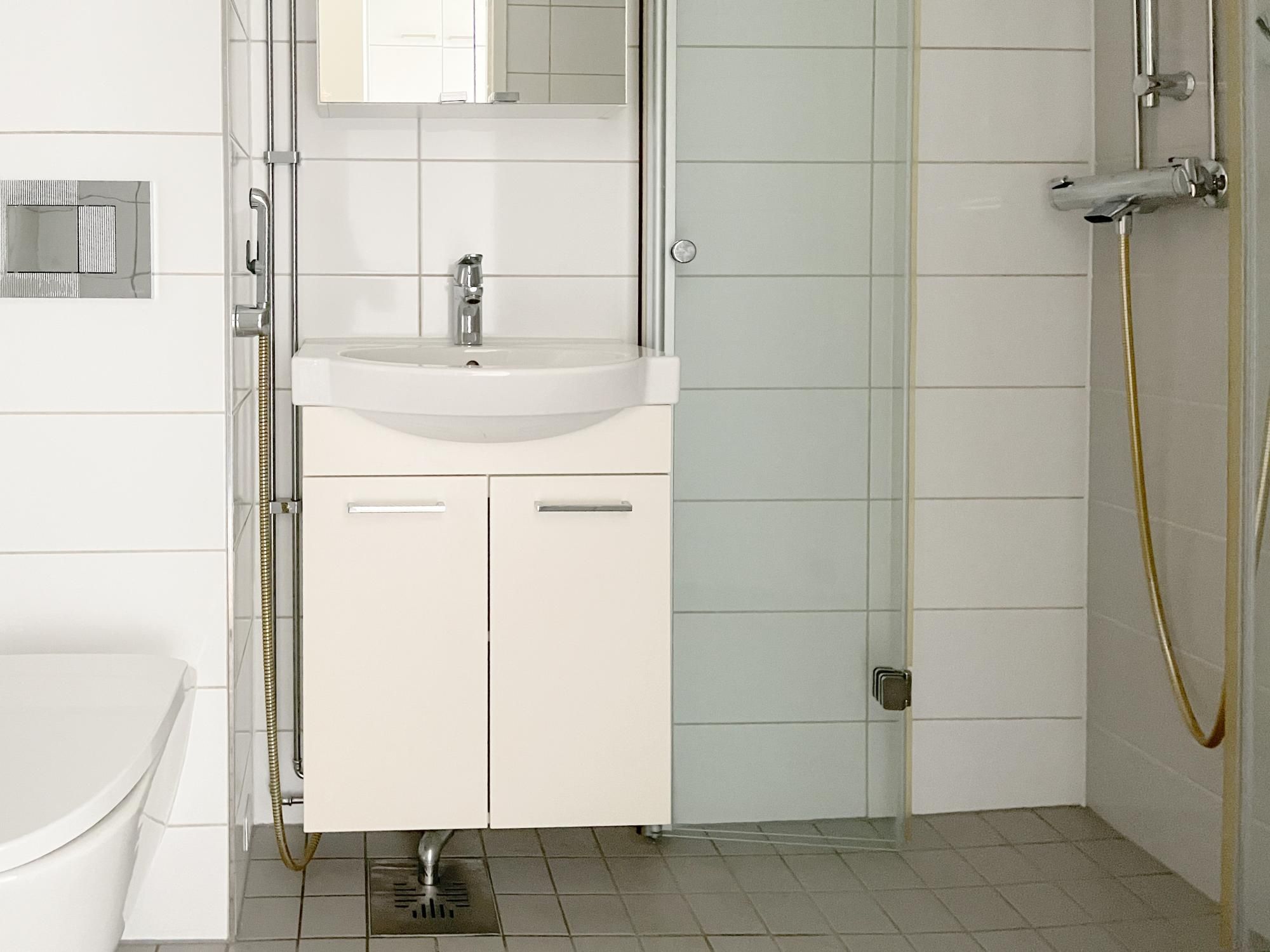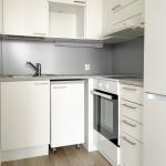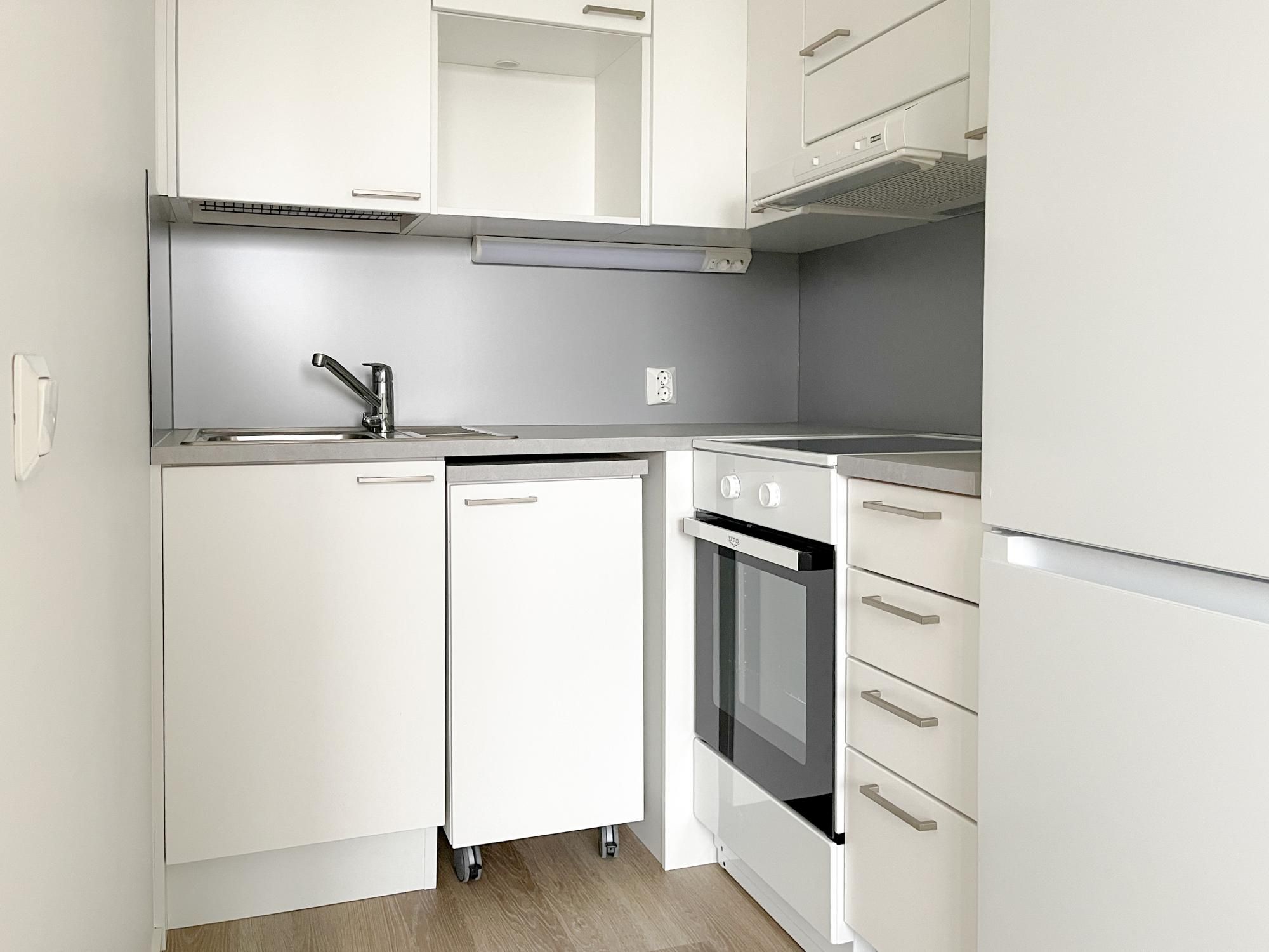 Keittiössä valmis paikka kapealle tiskikoneelle. Reilun kokoisessa kylpyhuoneessa pesukoneelle tila. Hissitalo.