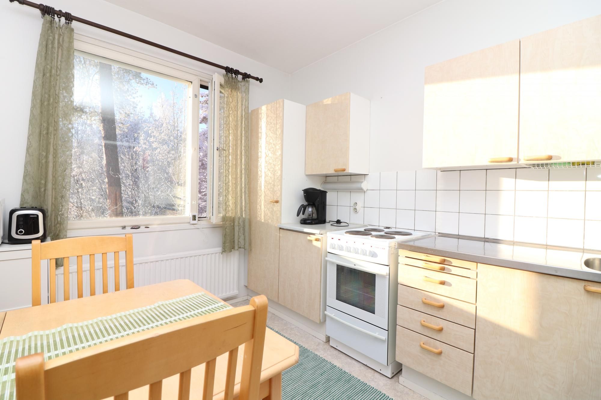 Parvekkeellinen valoisa kaksio rauhallisella paikalla metsän ja ulkoilumaastojen vieressä. Kauppa ja linja-autopysäkki lähellä, eikä keskustaankaan ole matkaa kuin parisen kilometriä. Keittiössä jääkaappipakastin, liesi ja hyvin tilaa isollekin pöydälle. Wc/kylpyhuoneessa suihkukaappi ja hyvin tilaa pesukoneelle. Pohjaratkaisultaan asunto toimii hyvin myös kimppa-asuntona. Puhtaat luottotiedot vaaditaan. Huoneisto vuokrataan mielellään pidemmäksi aikaa, kuitenkin vähintään vuodeksi.