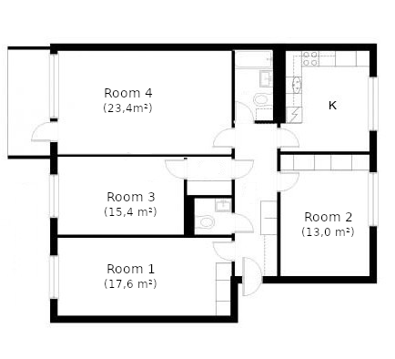 Kerrostalo, 13 m², soluhuone (4h + k + parveke)