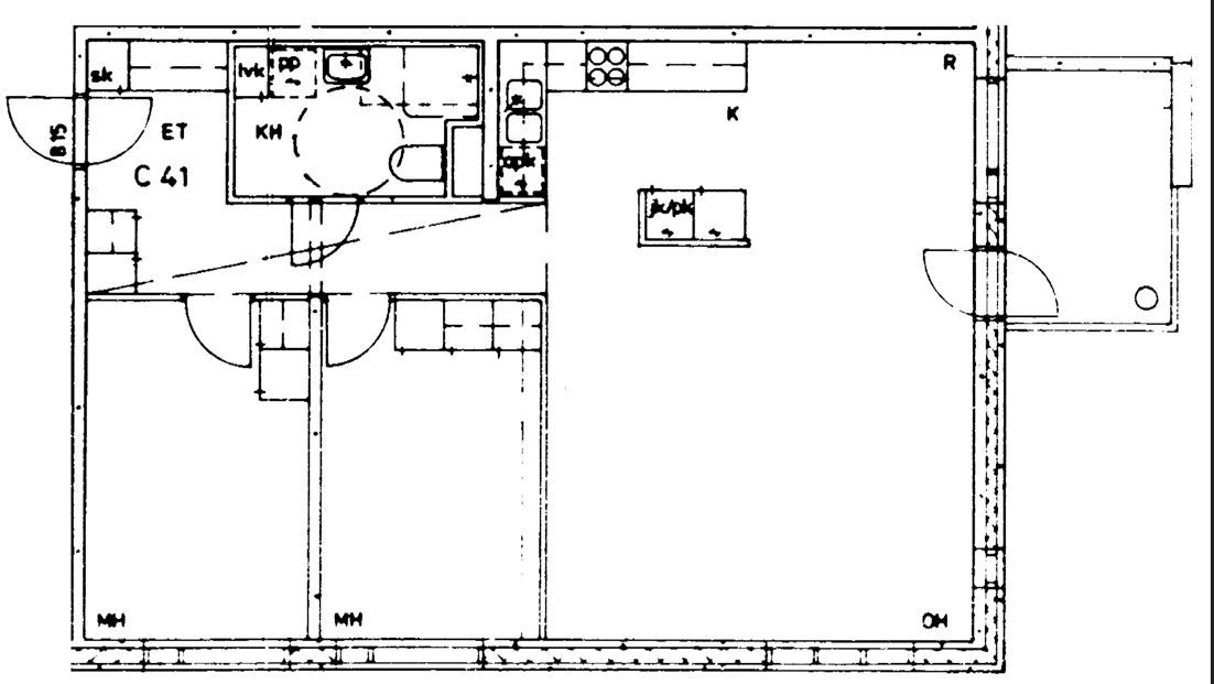 Kerrostalo, 76 m², 3h + k + kph + parveke