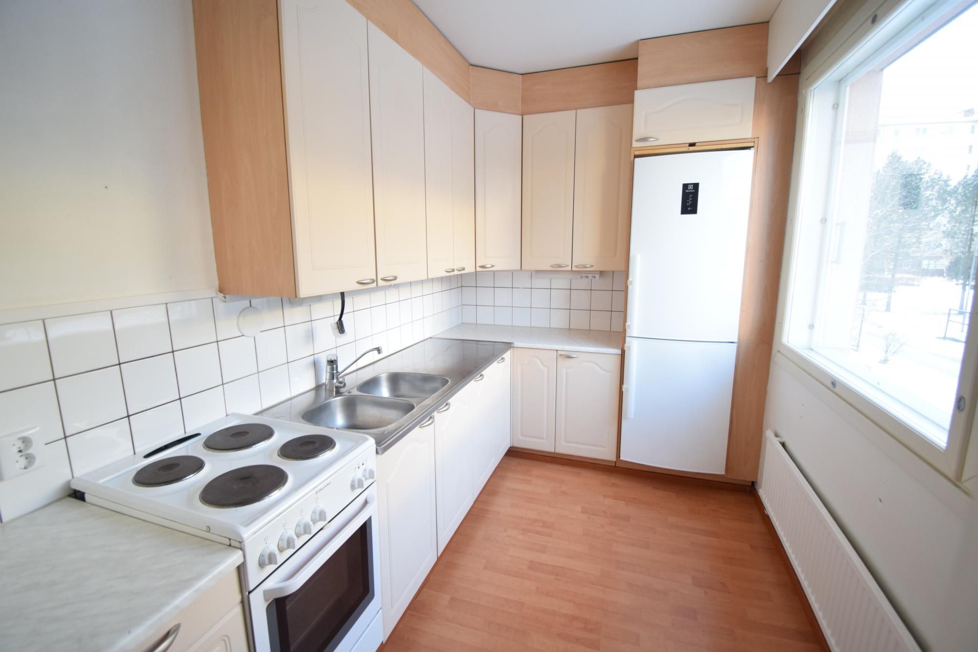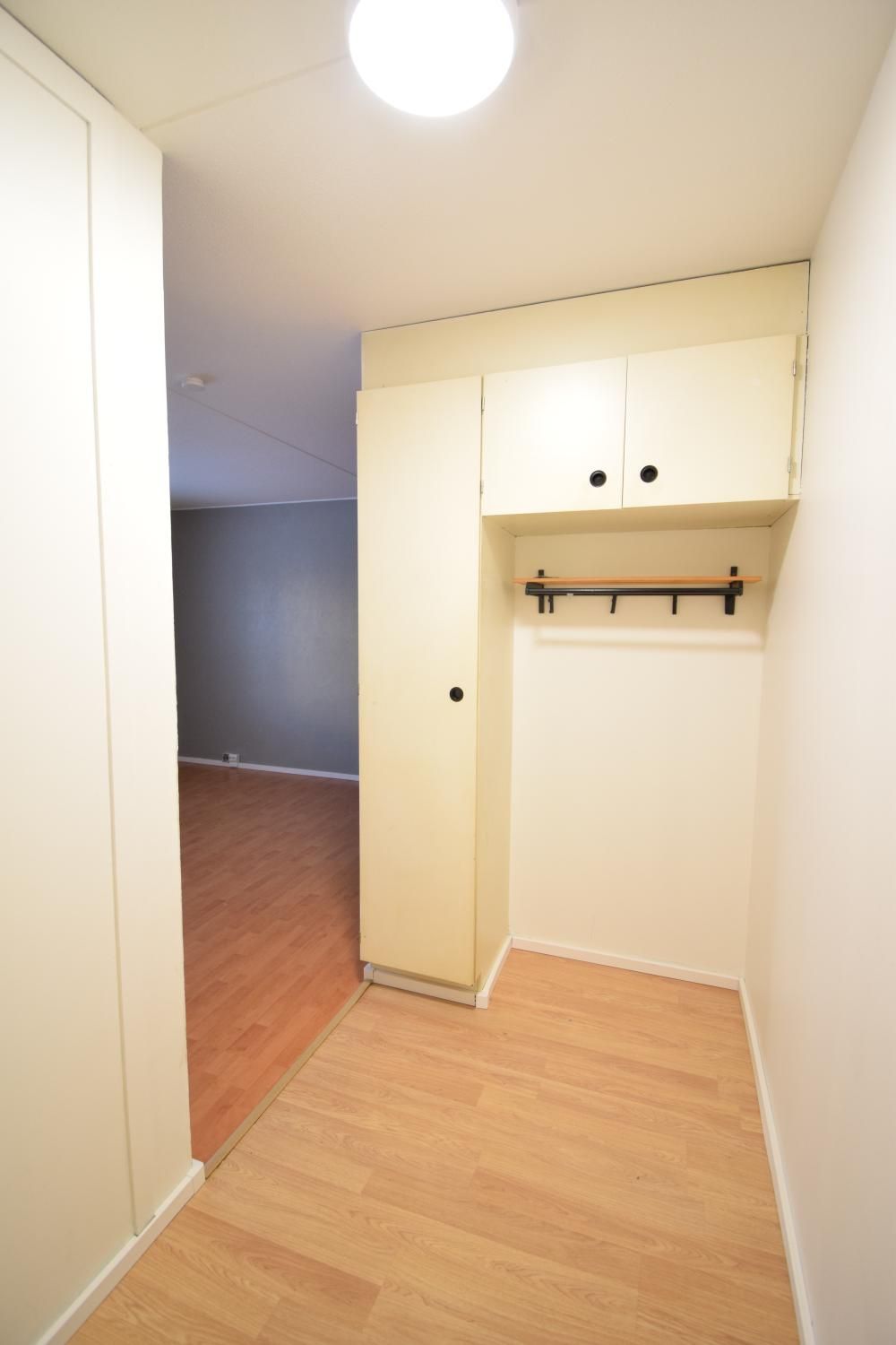 Ensimmäisen asuinkerroksen peruskuntoinen ja hyvin pidetty yksiö rauhallisella alueella. Olohuoneessa on siistit harmaat seinät sekä tilava alkovi. Keittiössä on reilusti kaappitilaa ja käytännöllinen jääkaappipakastin. Asunnossa on lisäksi iso vaatehuone, joka tarjoaa runsaasti säilytystilaa. Kylpyhuoneessa pyykinpesukone valmiina vuokralaisen käyttöön.