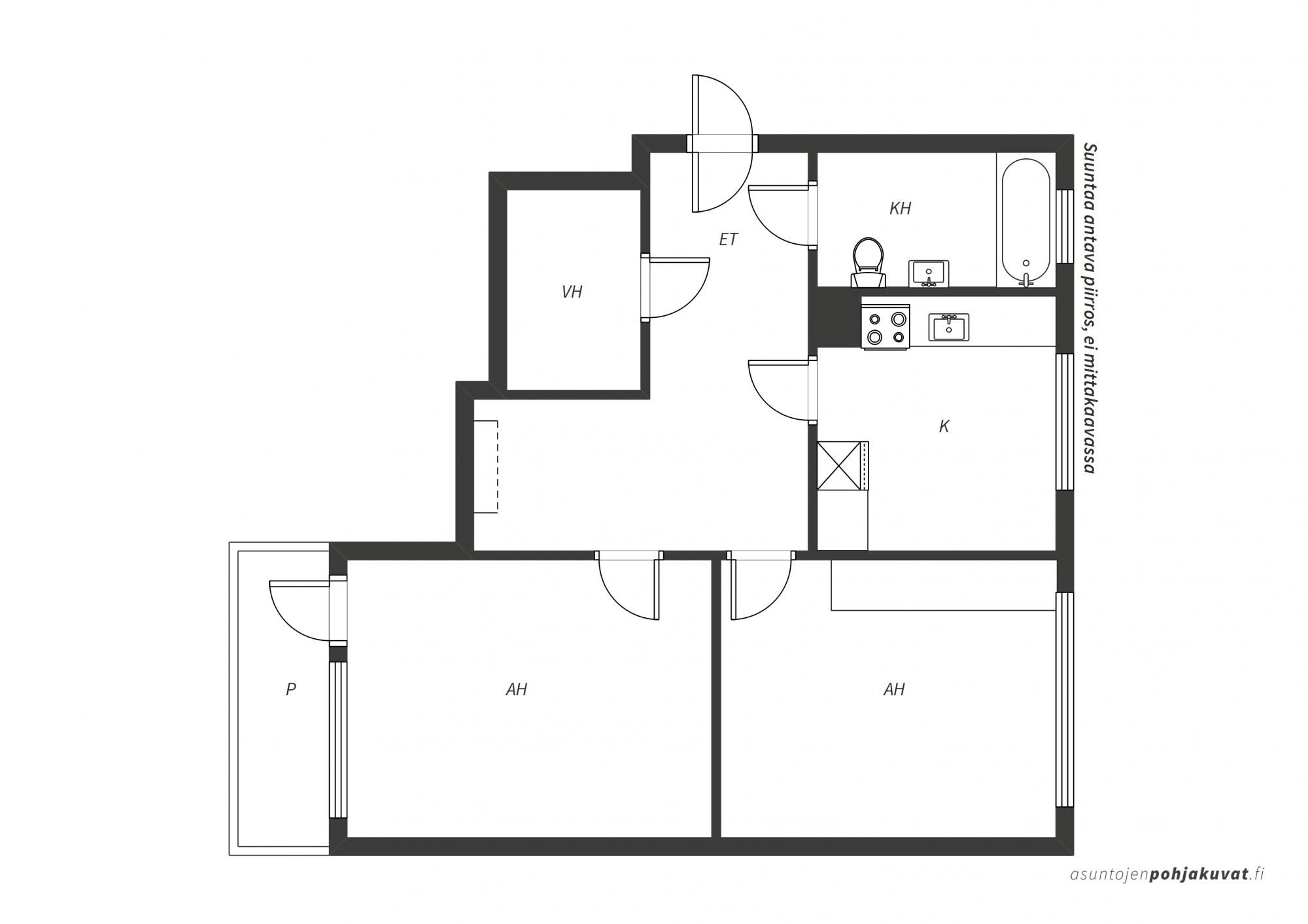 Kerrostalo, 53,5 m², 2h + kk + vh + kph + parveke