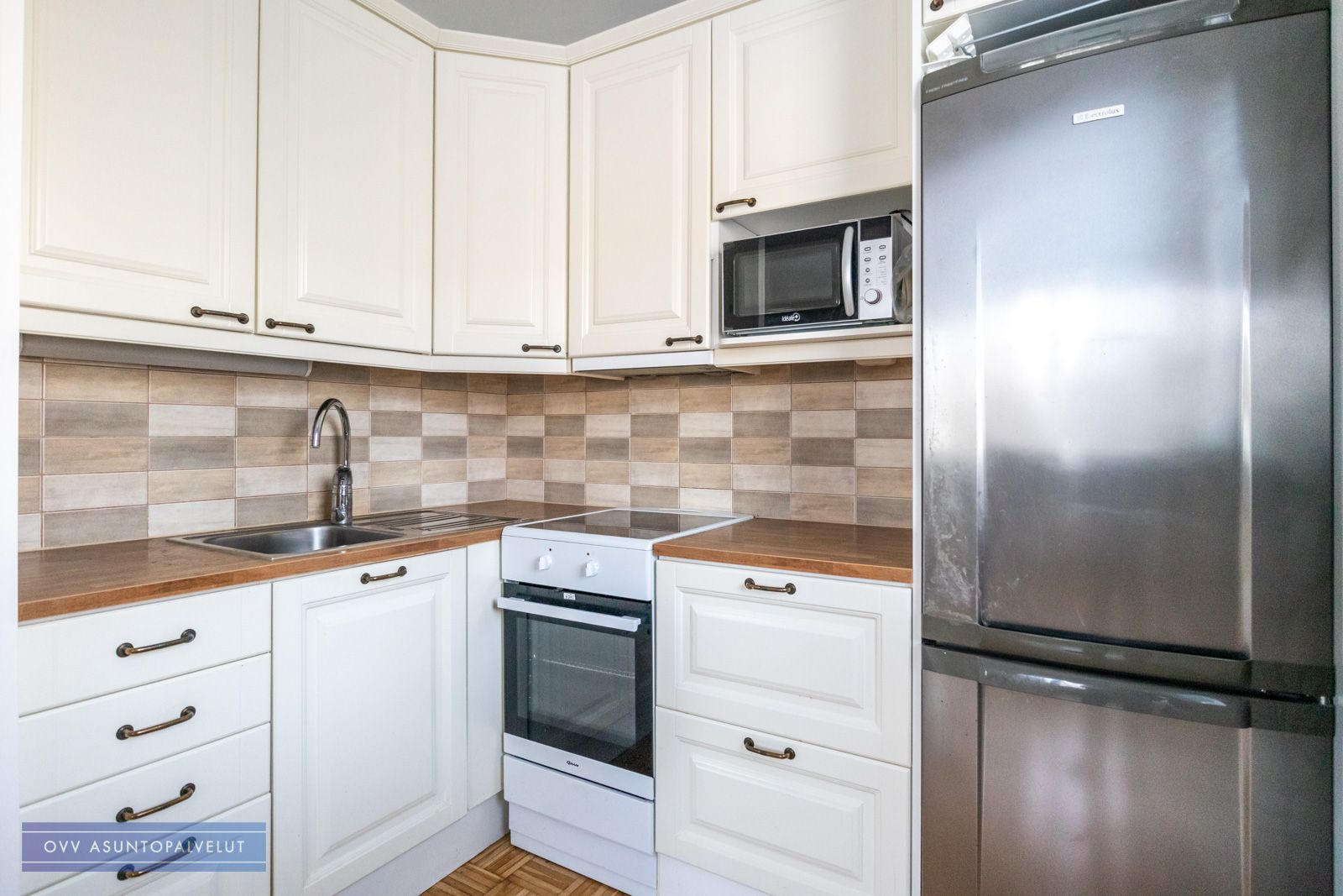 Asunnossa siisti joitain vuosia sitten uusittu keittiö, josta löytyy tilava jääkaappi-pakastin sekä induktioliesi.