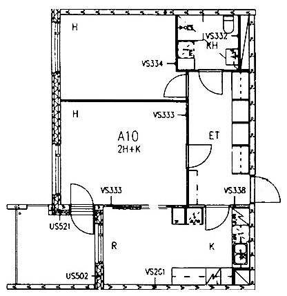 Kerrostalo, 58 m², 2h + k + kph + parveke