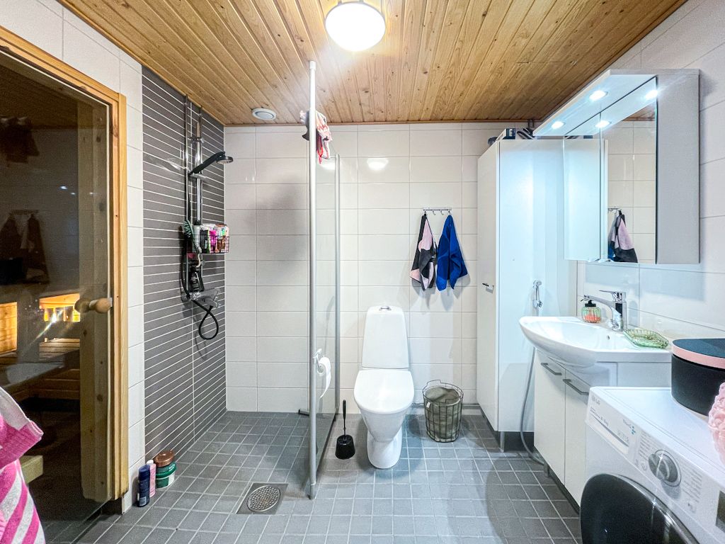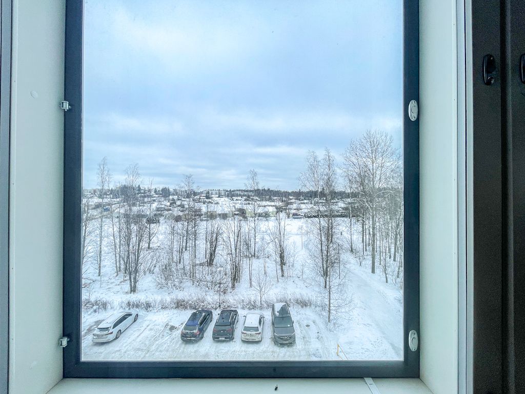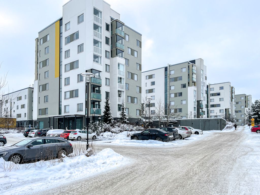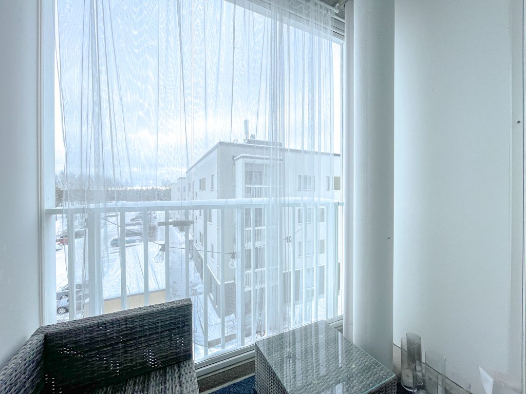 Tässä 4. kerroksen asunnossa on selkeä ja toimiva pohjaratkaisu, sekä tyylikkäät pinnat, joten se on helppo sisustaa mieleiseksi. Modernissa keittiössä on tilaa työskennellä ja sieltä löytyy kaikki tarvittava mm. astianpesukone arkea helpottamaan. Isoista ikkunoista avautuu näkymät kahteen suuntaan. Olohuoneen kautta on kulku suojaisalle lasitetulle parvekkeelle, jossa kelpaa nauttia vaikkapa aamukahvit. Kaappitilaa löytyy kivasti niin eteisestä kuin makuhuoneenkin puolelta. Kylpyhuoneesta löytyy pesukoneliitäntä, sekä oma sauna, jossa kelpaa nauttia arjen kiireiden keskellä.