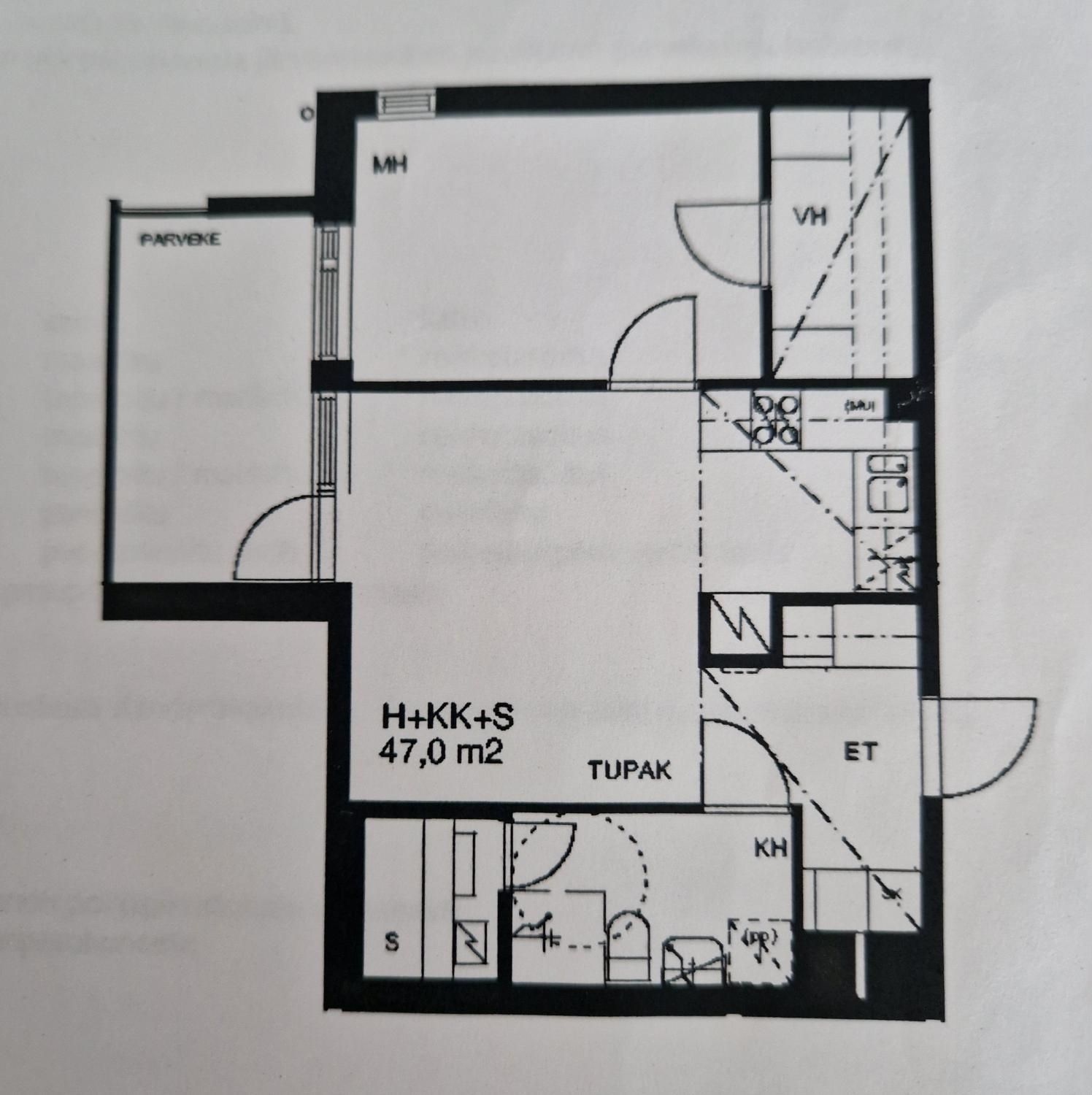 Kerrostalo, 47 m², 2h + k + s + lasitettu parveke