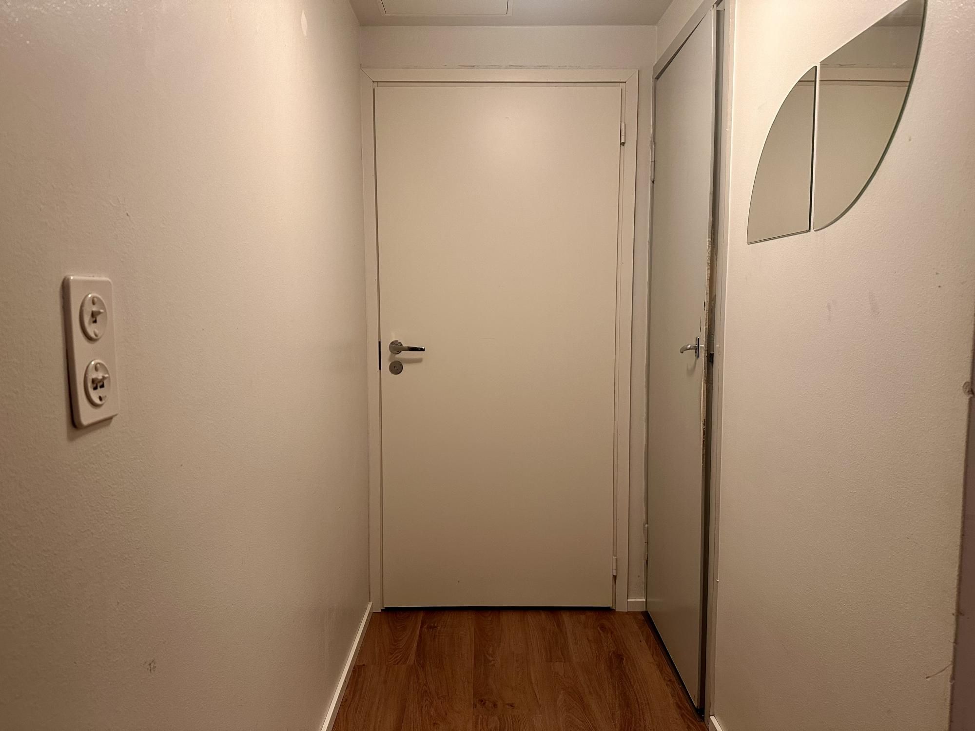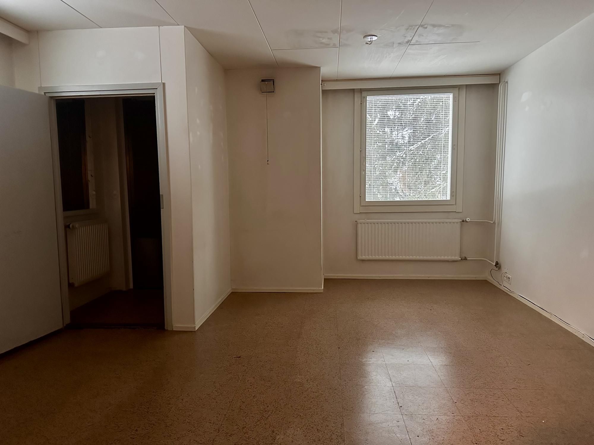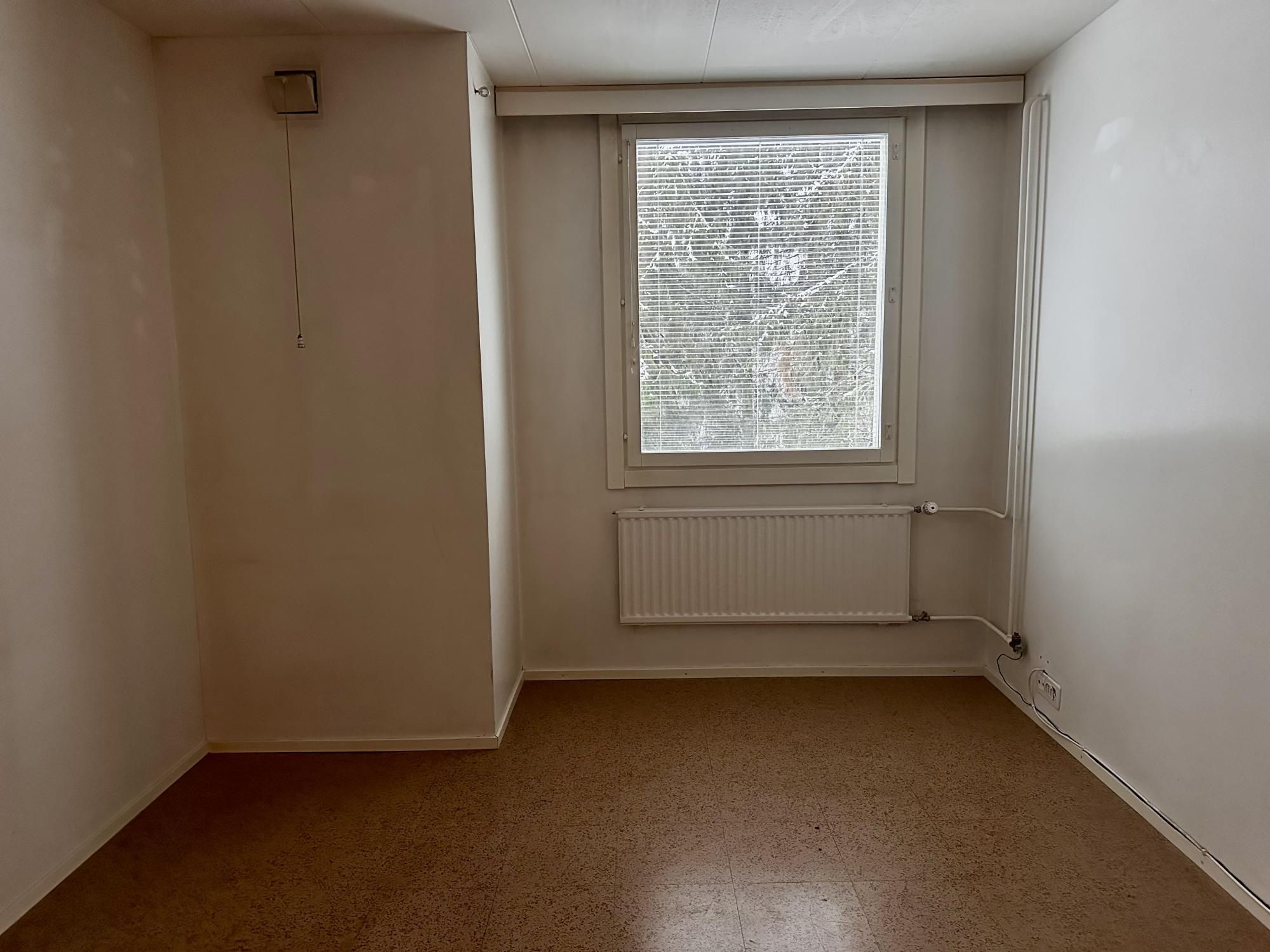 Kaksi erillistä huonetta, lisäksi tilava vaatehuone. Tyydyttävä kuntoinen asunto, lattiassa muovimatto.