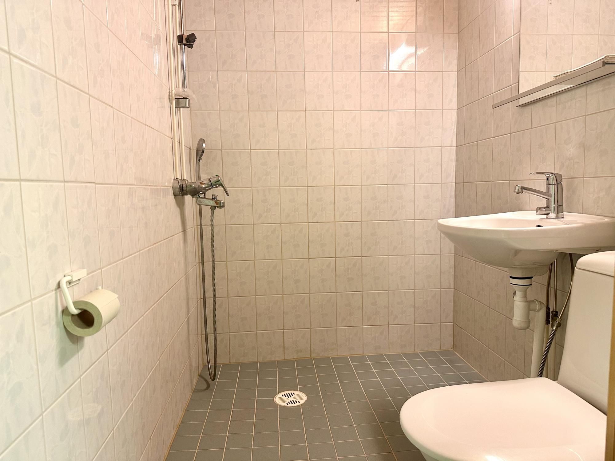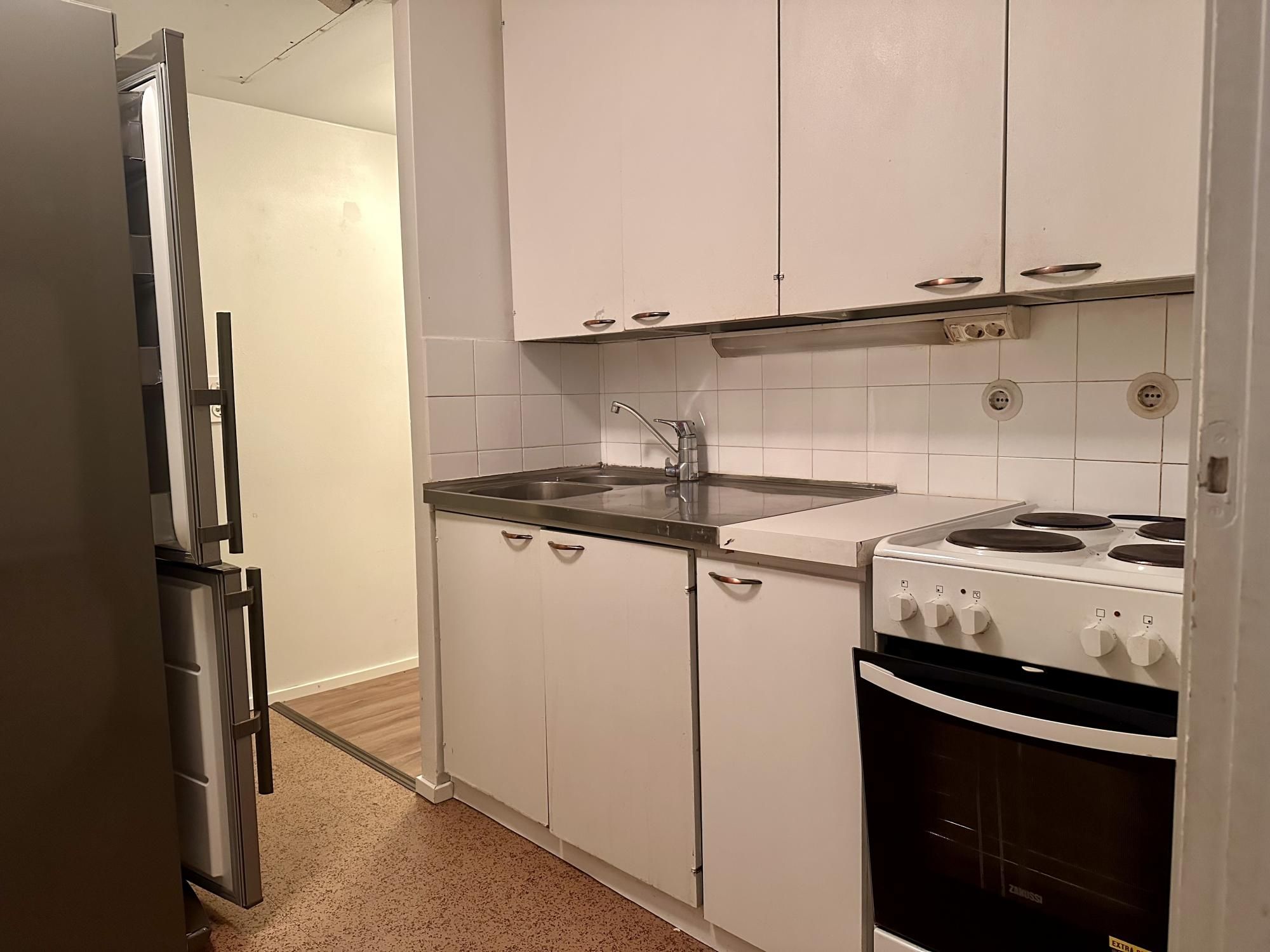 Tässä heti vapaana erikoisempi huoneisto kerrostalon alakerrasta, toiminut aikanaan talonmiehen asuntona. Oma sisäänkäynti ulkoa, sekä suora käynti talon kellarikerrokseen, jossa erillisenä suihkutila tälle asunnolle.