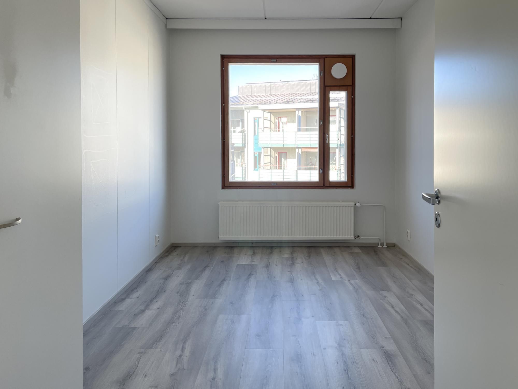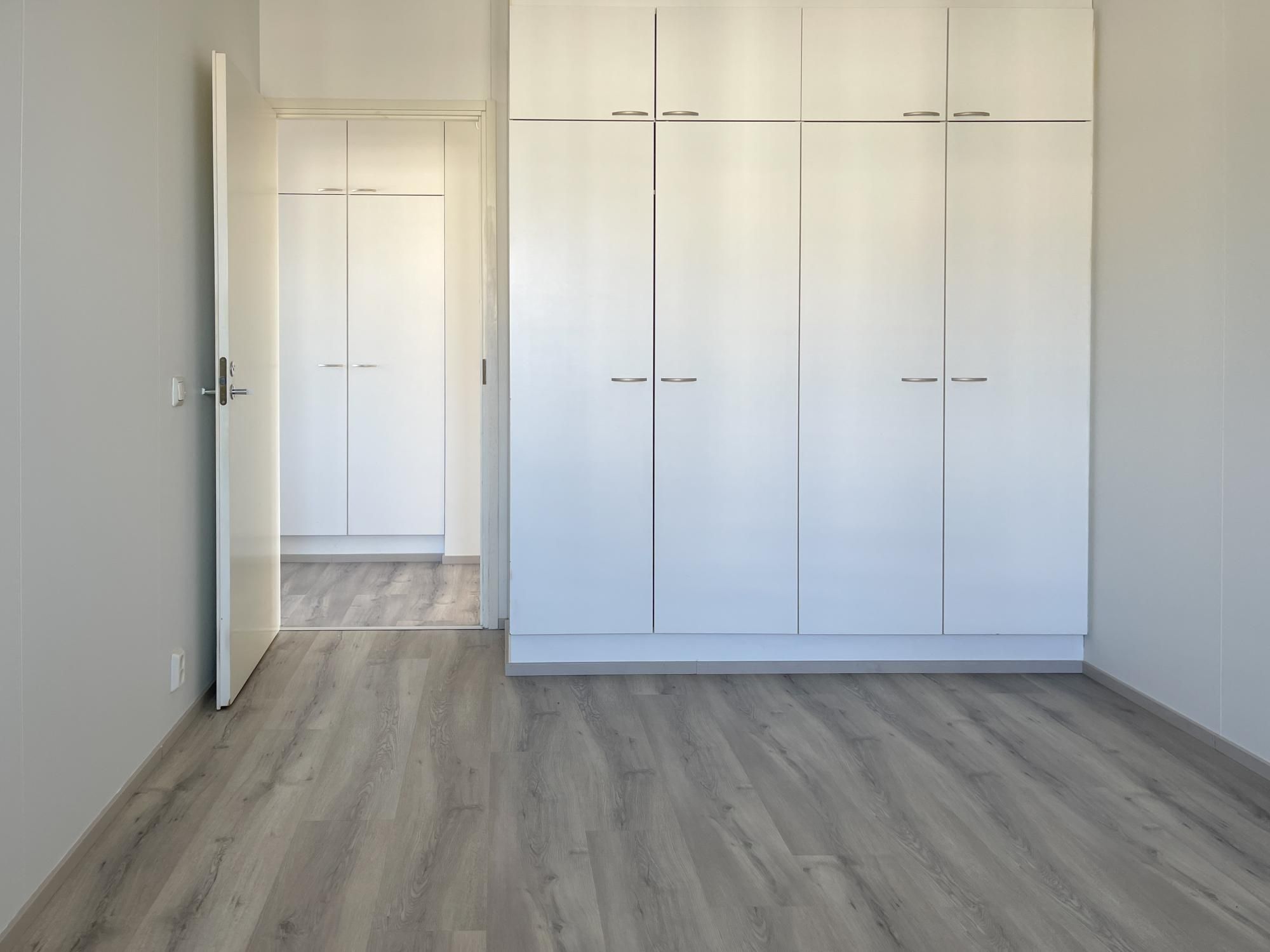 Tässä asunnossa on valoisa olohuone, jonka yhteydessä on tilava keittiö. Toisesta makuuhuoneesta käynti omalle parvekkeelle, jolta pilkottaa myös hieman merinäköalaa.