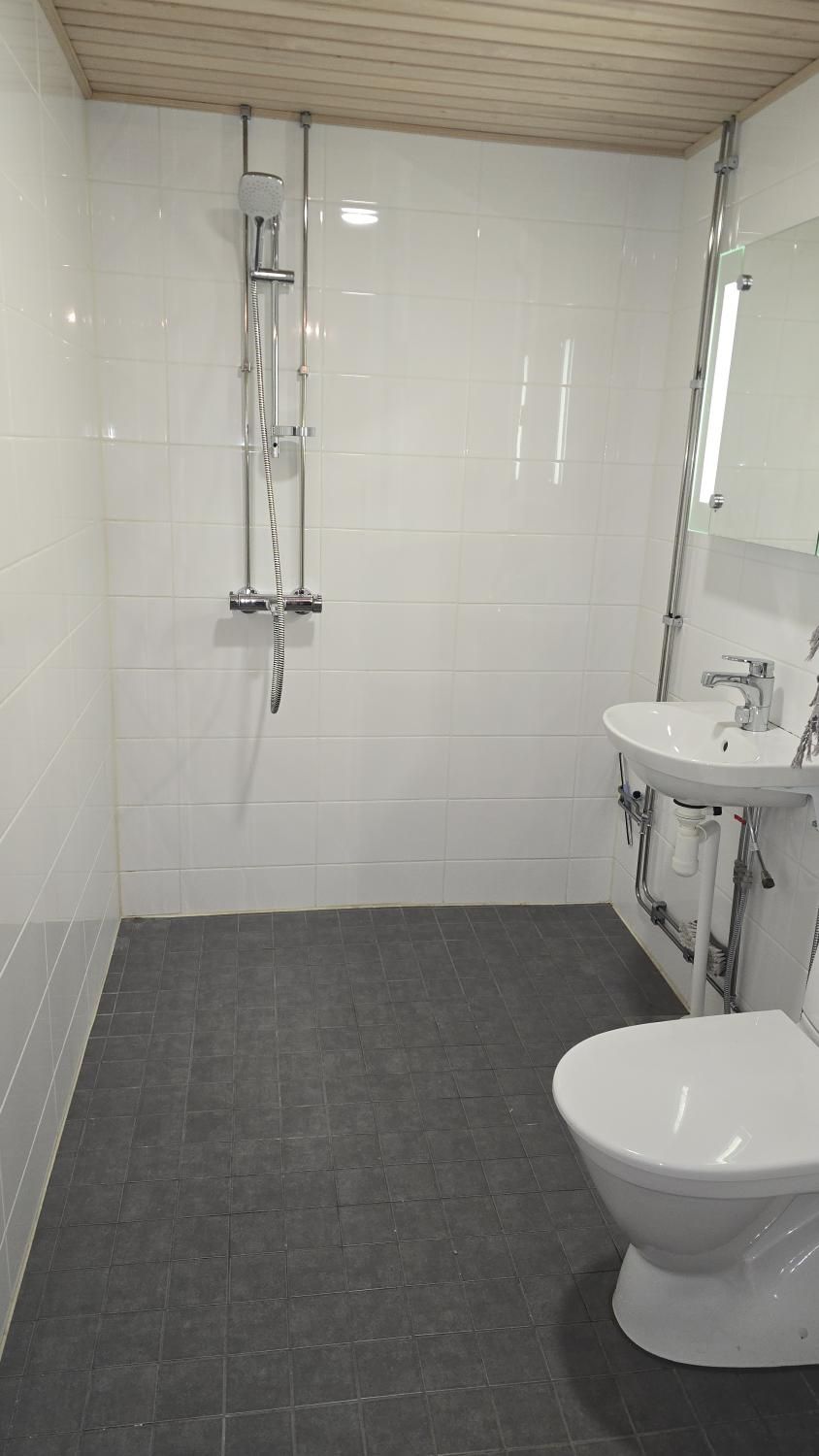 Kylpyhuoneessa paikka pyykinpesukoneelle.