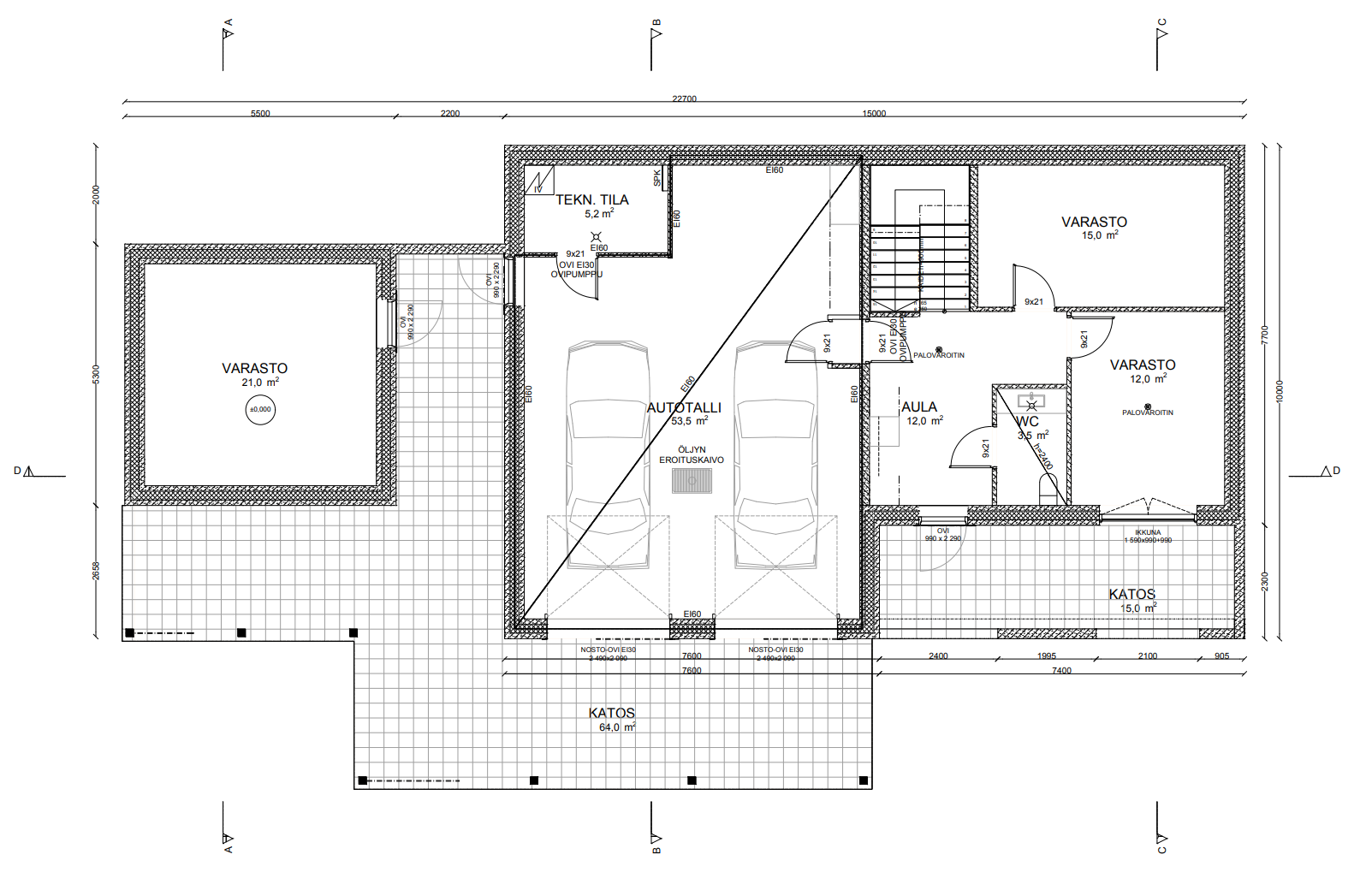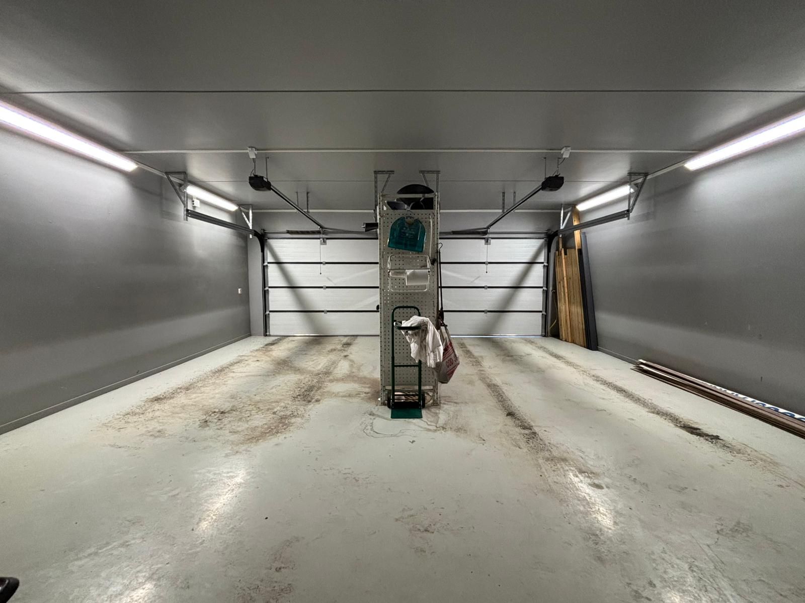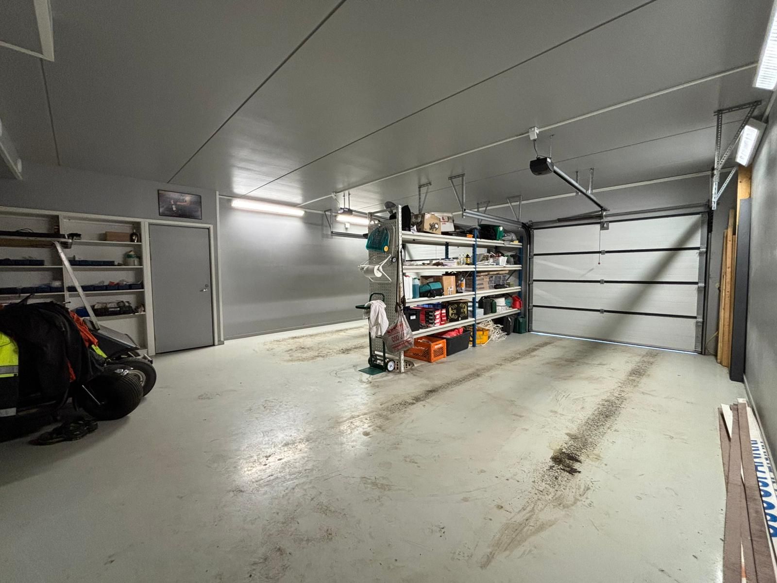 Talon alakerrassa on suuri autotalli, jonne mahtuu kaksi autoa sekä useita harrastuvälineitä.