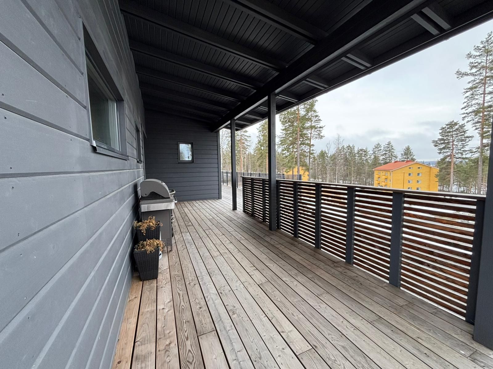 Talon yhtenä erikoisuutena löytyy erillinen spa-osasto. Sisäänkäynti tapahtuu yläkerran kautta ja osastolta löytyy kaksi sadesuihkua, wc sekä suuri tunnelmallinen sauna. Spa tiloista pääsee helposti vilvoittelemaan ulos koko talon levyiselle terassille, josta on näkymät Höytiäiselle.