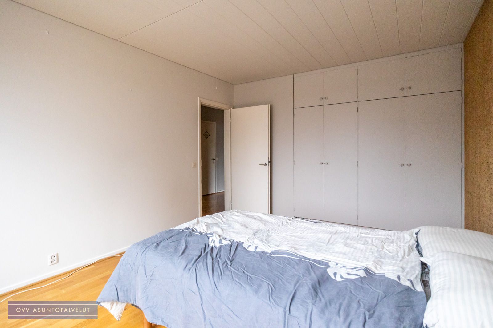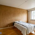 Toinen makuuhuoneista erittäin tilava ja sieltä löytyy seinustalta kiinteitä kaapistoja. Pienempi makuuhuone voi hyvin käyttää vieressä olevaa vaatehuonetta säilytykseen.
