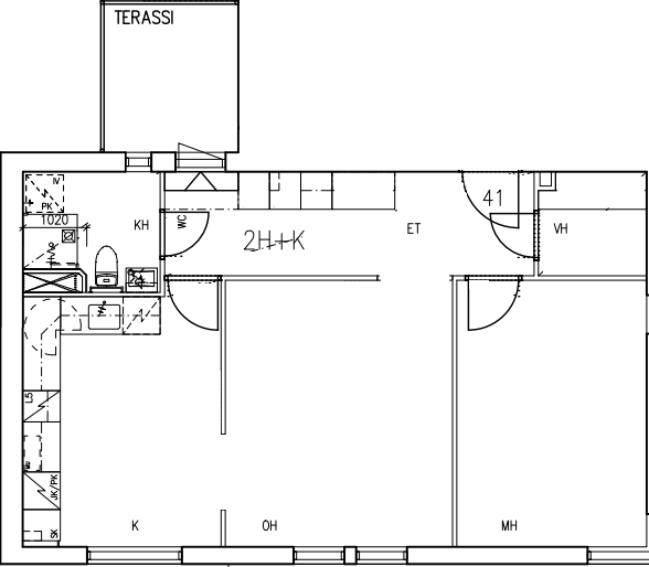 Kerrostalo, 59,5 m², 2h + k + vh + kph + lasitettu parveke