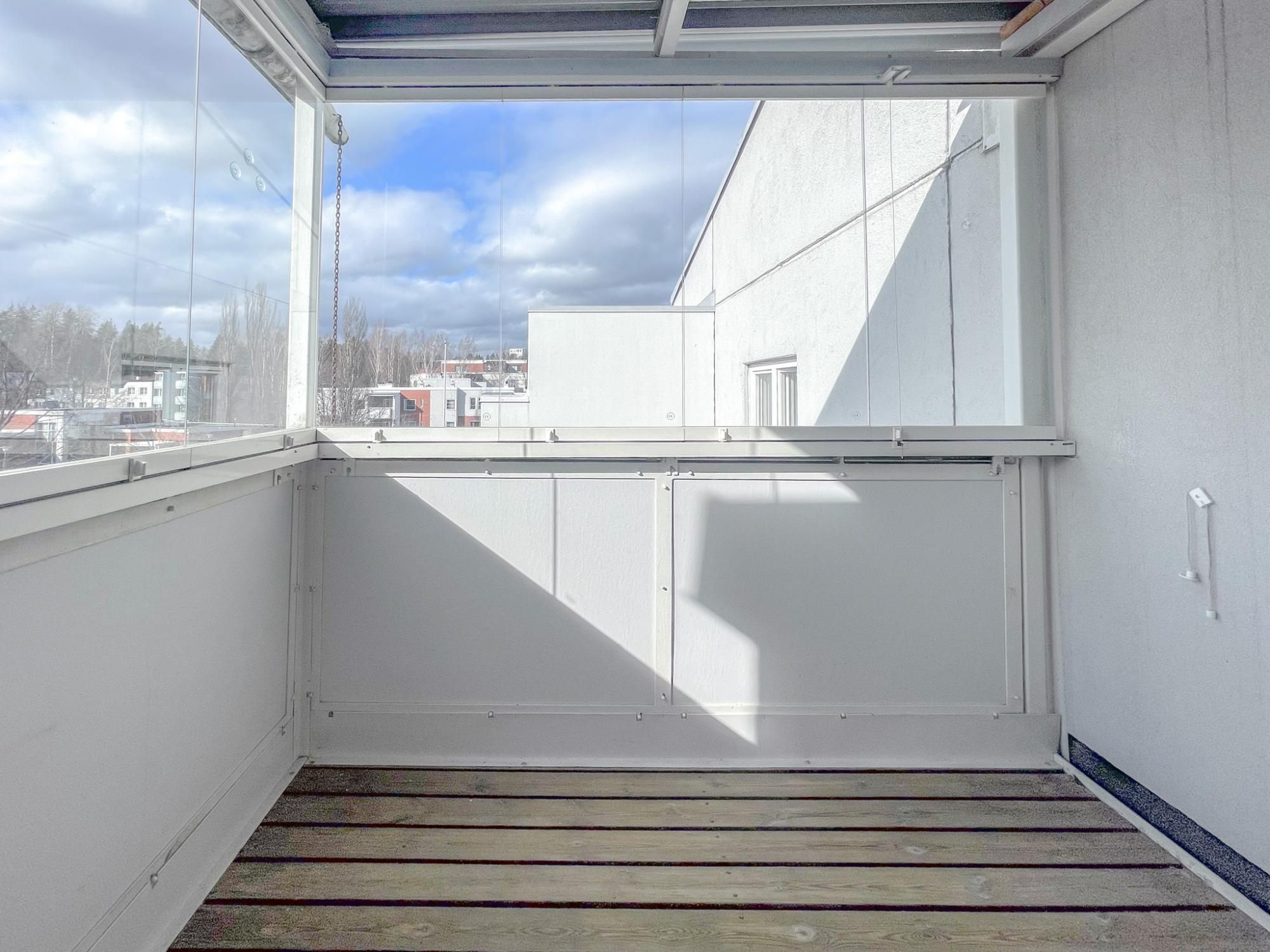Siisti ja tilava ylimmän kerroksen kahden huoneen koti Kaarelassa/Malminkartanossa. Lasitettu parveke lisää viihtyvyyttä. Vaatehuoneen ansiosta asunnossa on hyvin säilytystilaa. Vesi laskutetaan kulutuksen mukaan.