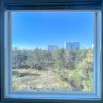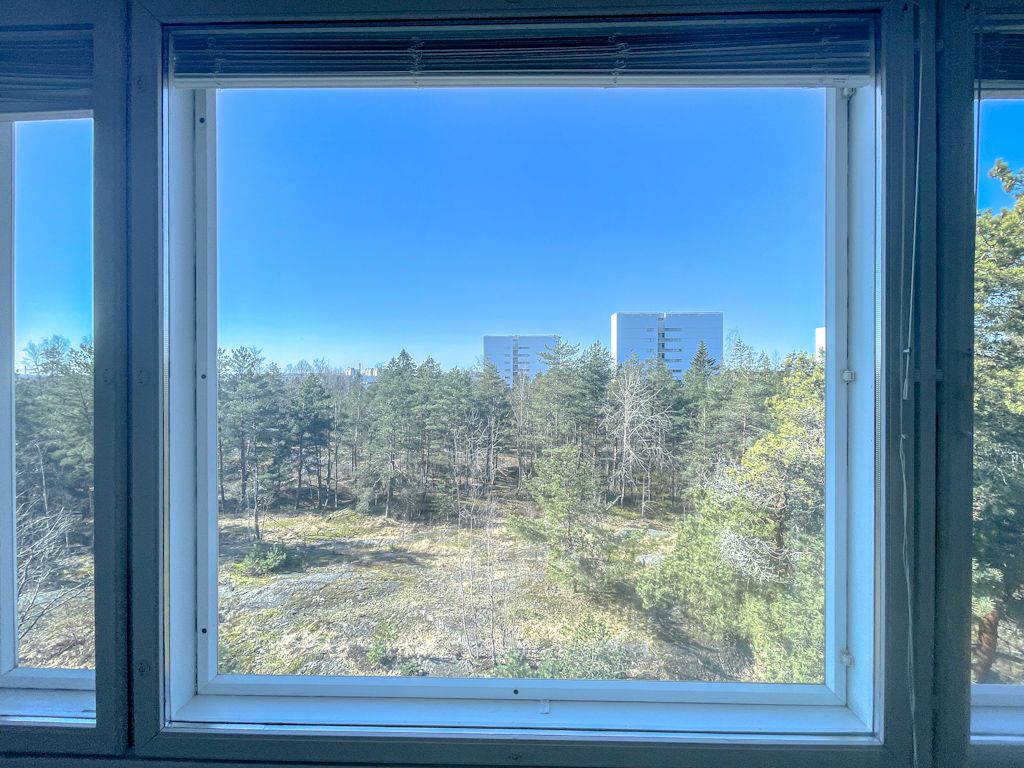 Siisti ja valoisa koti kivalla paikalla Pihlajamäessä. Isosta, koko seinän levyisestä ikkunasta tulvii valoa.