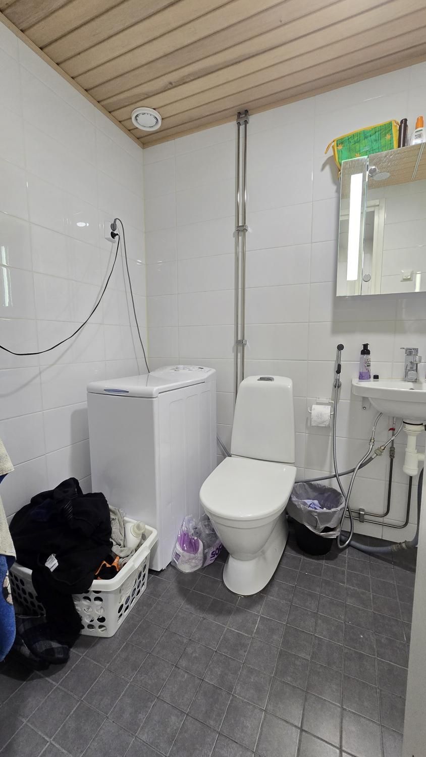 Kylpyhuoneessa paikka pyykinpesukoneelle.