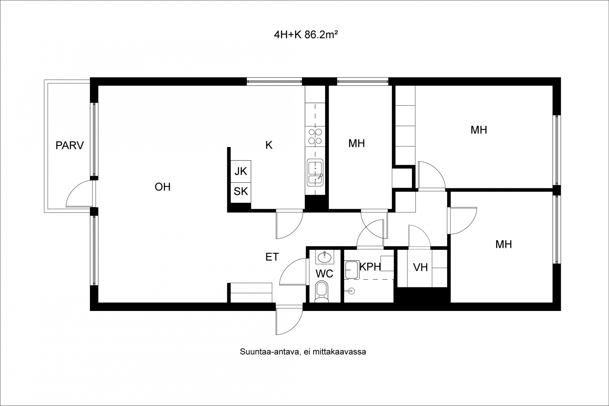 avara ja käytännöllinen pohjaratkaisu. Kolmioissa ja neliöissä on kaikissa oma parveke, ja ne