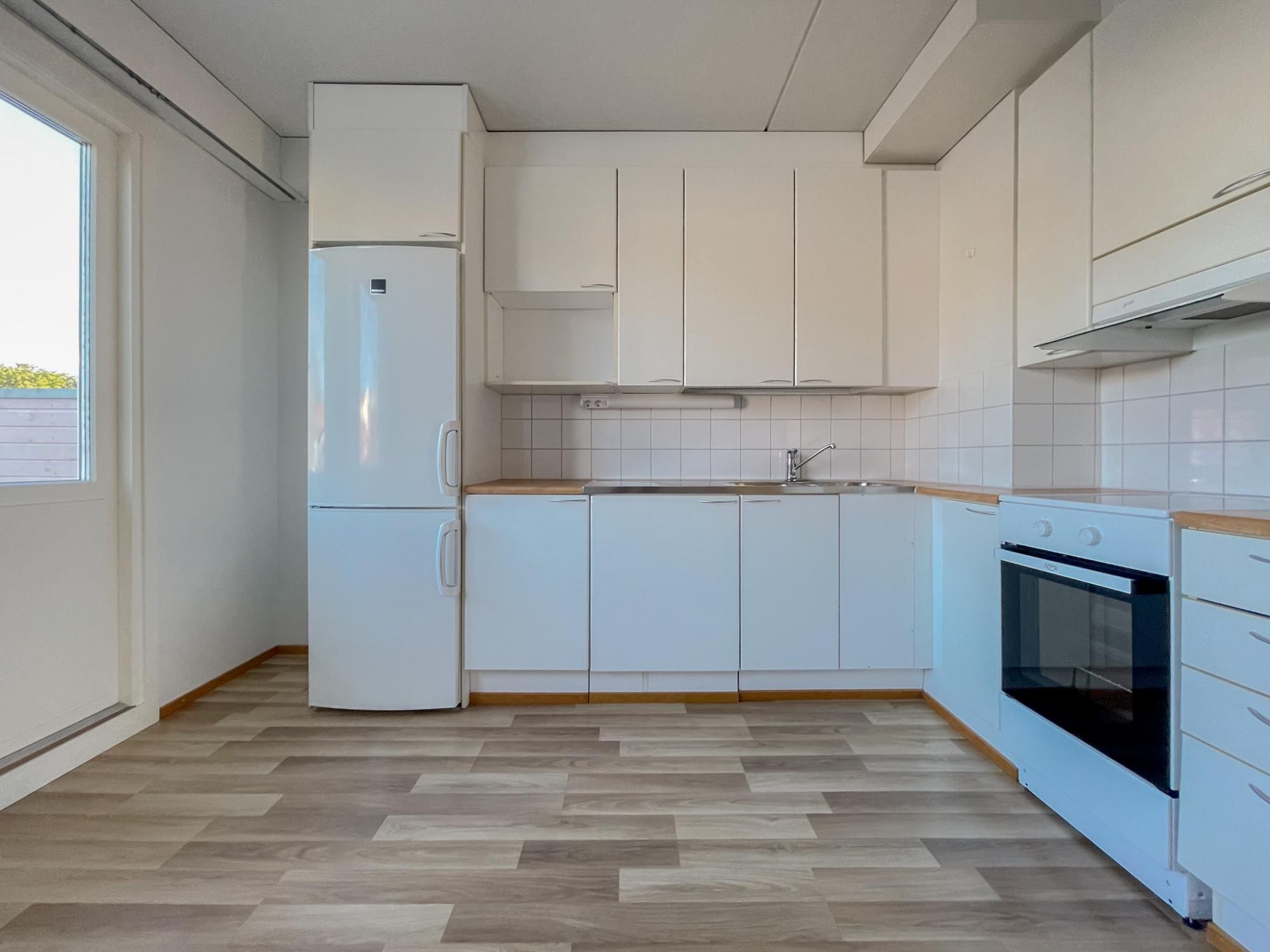 Keittiön varusteluun kuuluu runsaasti kaappitilaa, uuni, liesi, liesituuletin sekä jääkaappipakastin. Keittiöstä käynti pienelle terassille. Olohuoneesta on käynti omalle terassiparvekkeelle. Kylpyhuoneessa on liitäntä pyykinpesukoneelle. Lisämukavuutena oma sauna!