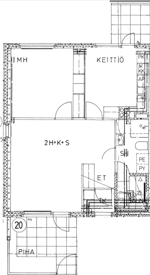 Kerrostalo, 60 m², 2h + k + s + terassiparveke