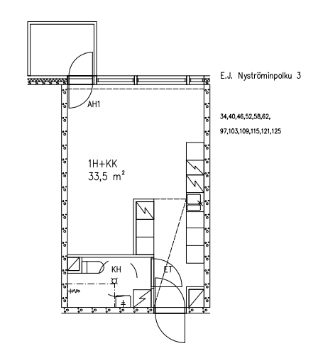 Kerrostalo, 33,5 m², 1h + kk + kph + parveke
