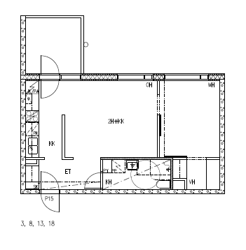 Kerrostalo, 45,5 m², 2h + kk + vh + lasitettu parveke