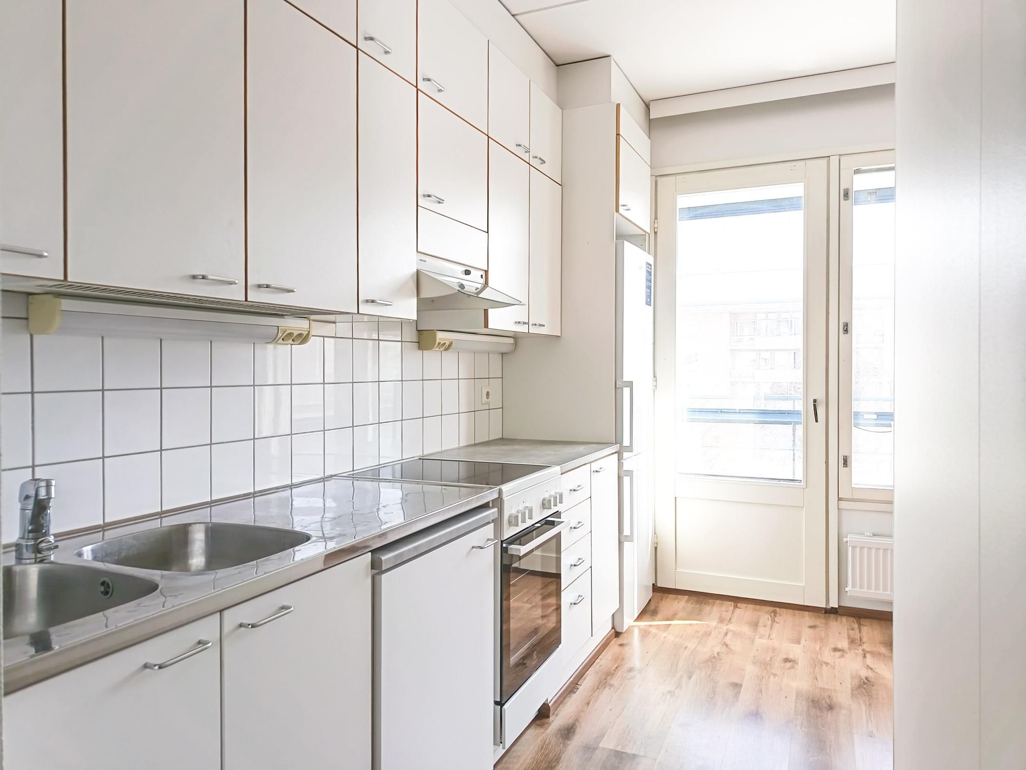 Keittiössä siistit kaapistot, varusteluun kuuluu uuni, liesi, jääkaappipakastin ja myös astianpesukoneelle on liitäntä. Tässä kodissa on oma lasitettu parveke, ja säilytystilaa asuntoon tuo tilava vaatehuone. Kylpyhuoneessa liitäntä pyykinpesukoneelle. Vesi laskutetaan kulutuksen mukaan. Herttoniemessä kaikki tarvittavat peruspalvelut lähellä, ja merenrantakin on lähellä.