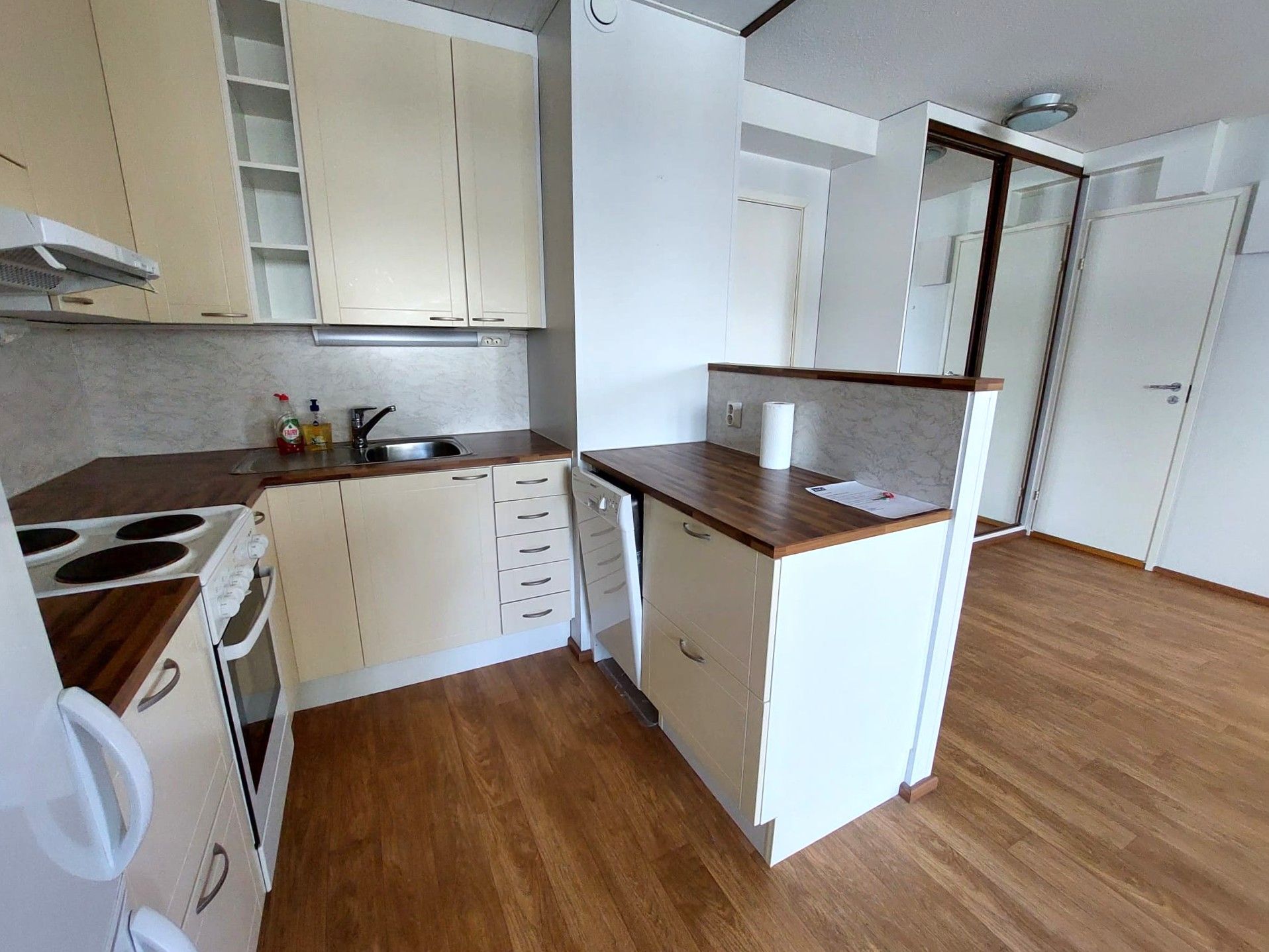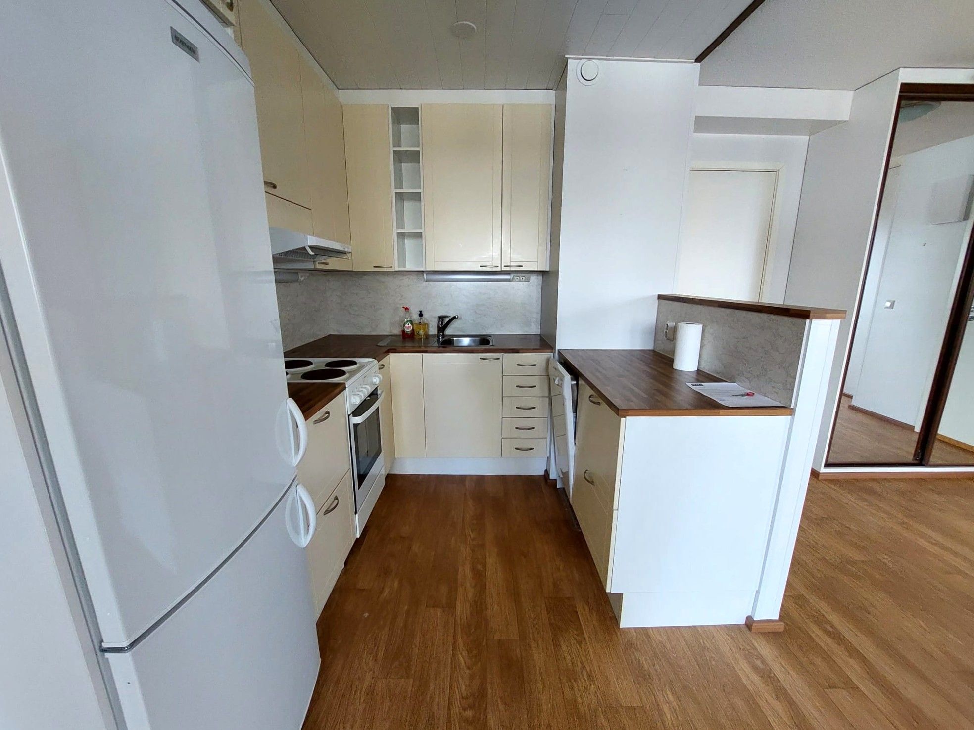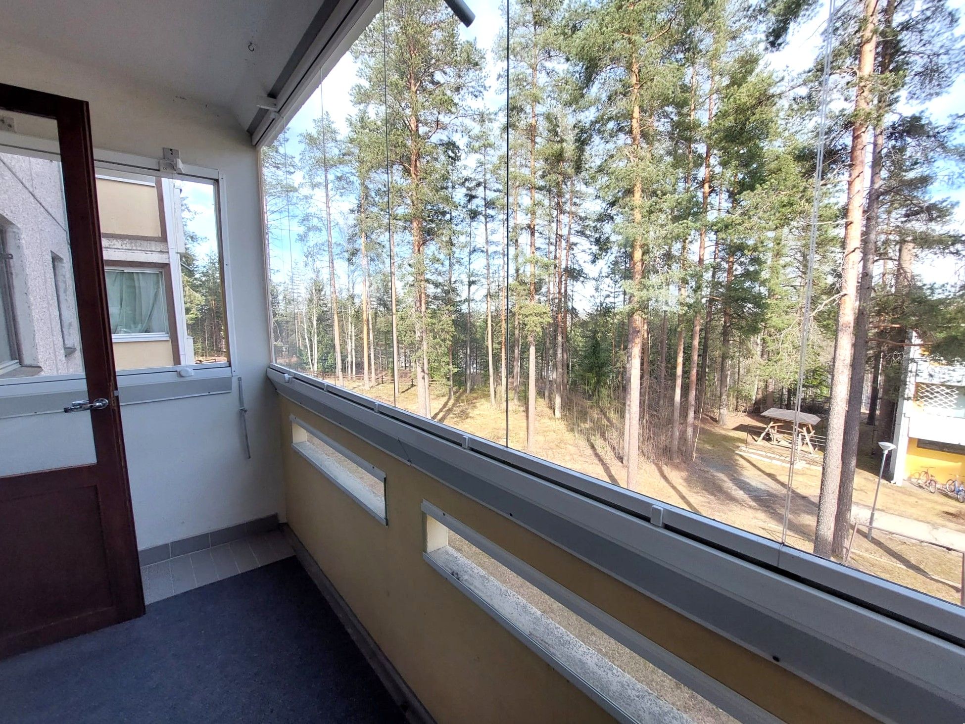 Keittiössä jääkaappi/pakastin, liesi- ja liesituuletin, astianpesukone sekä hyvin laskutilaa. Kaakeloidussa wc/kylpyhuoneessa liitäntä ja tila omalle pyykinpesukoneelle. Asunnolla on lasitettu parveke, josta rauhalliset näkymät. Säilytystilana on kaksi kaapistoa sekä huoneistokohtainen varastotila.