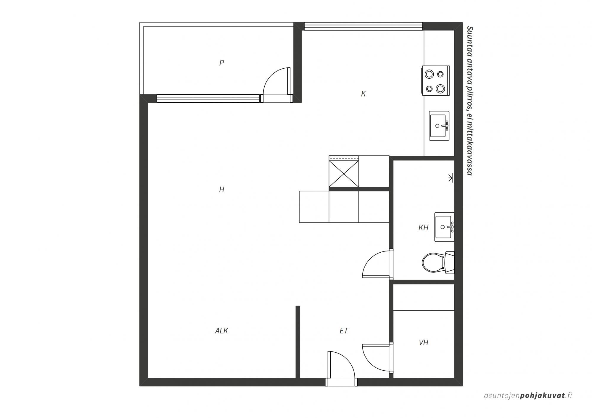 Kerrostalo, 37,5 m², 1h + k + vh + kph + parveke