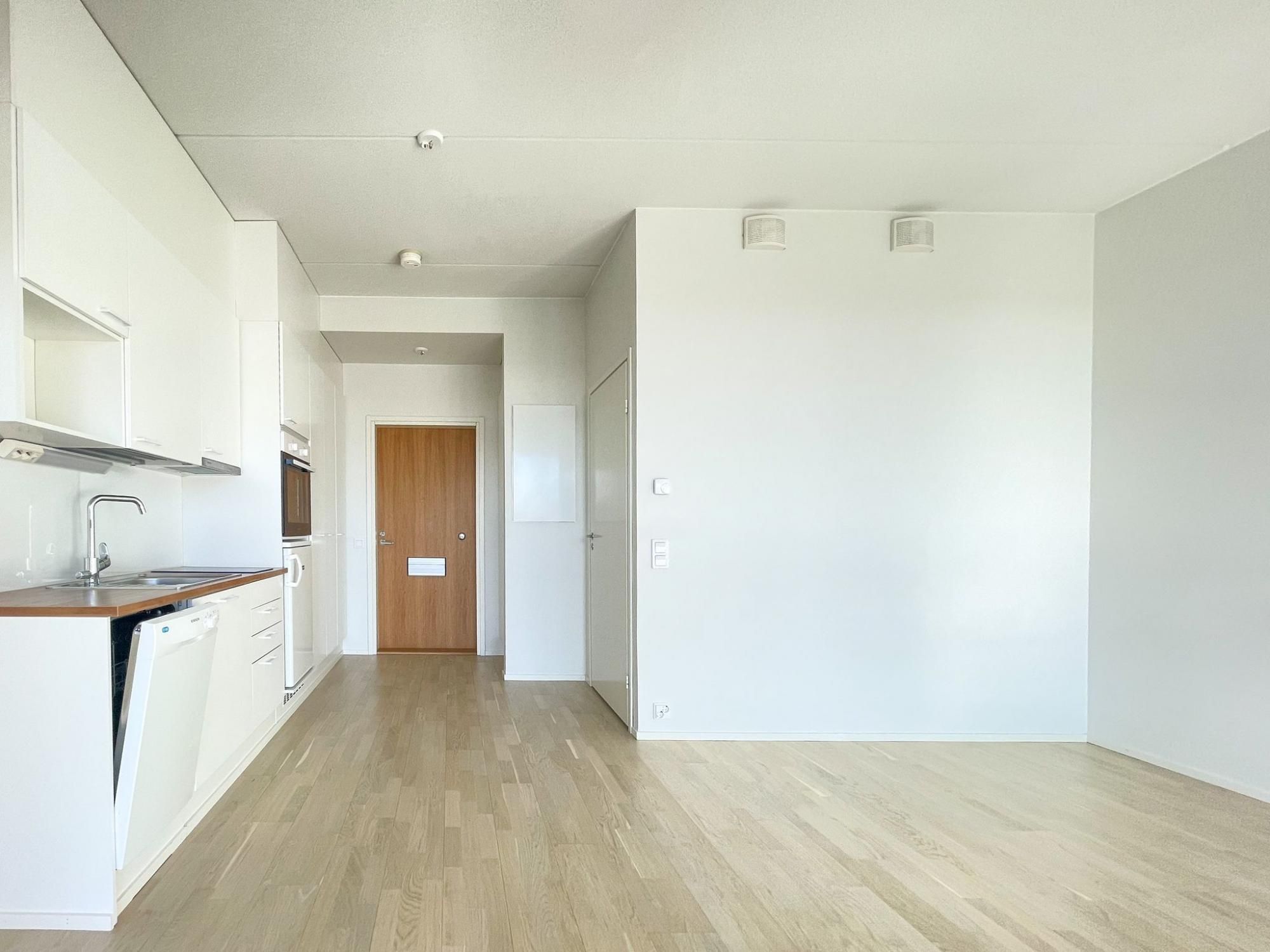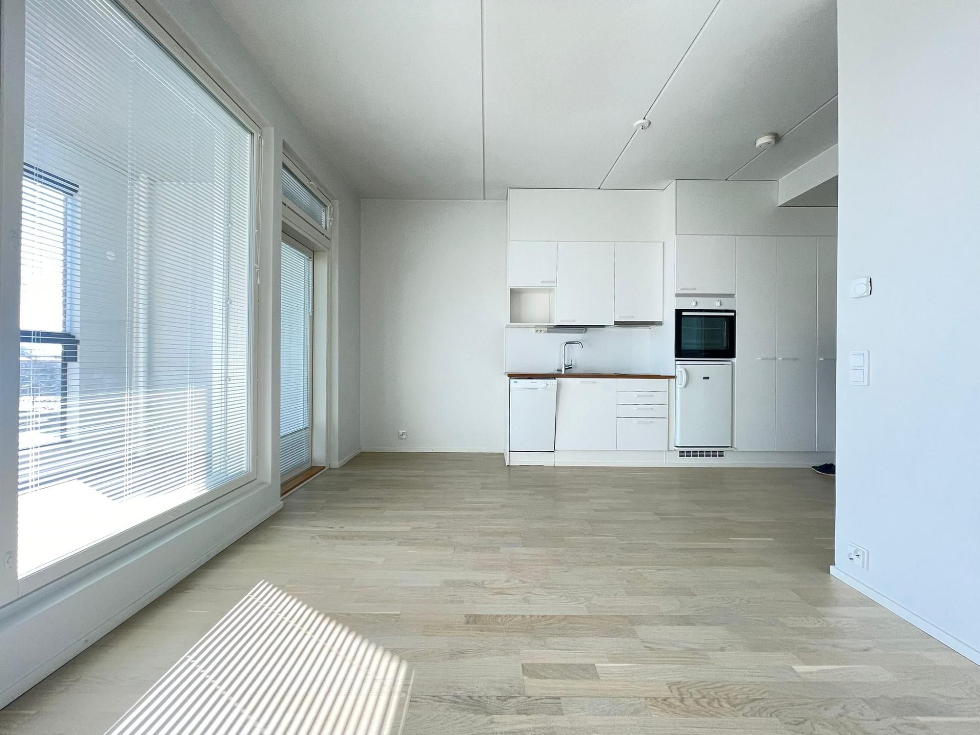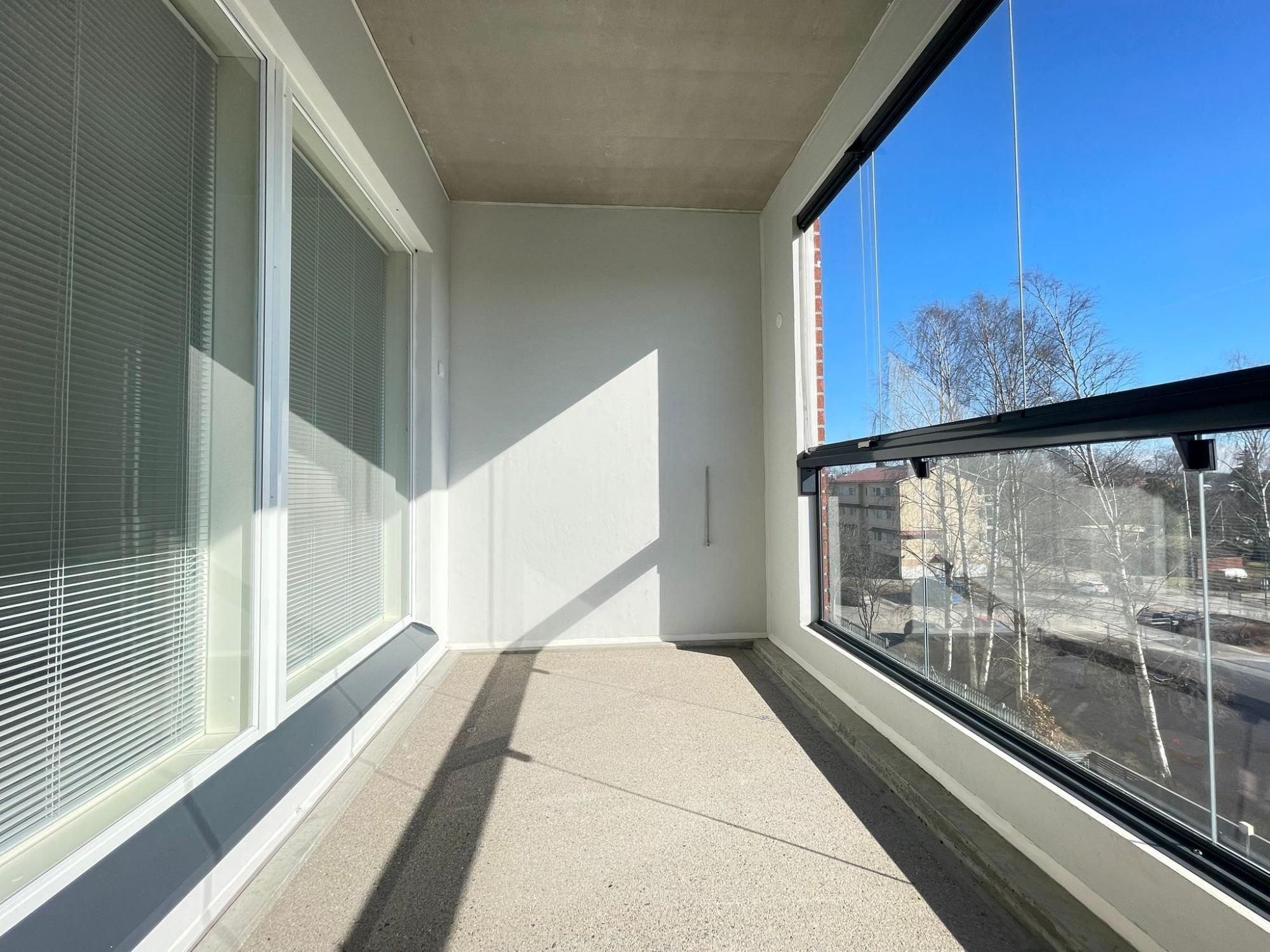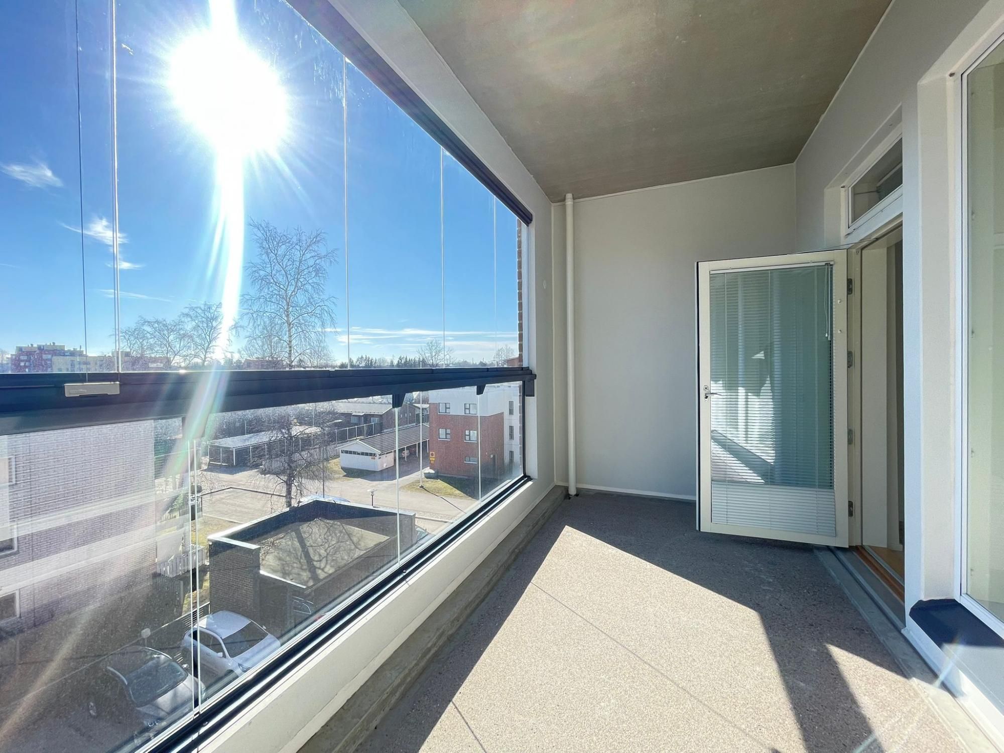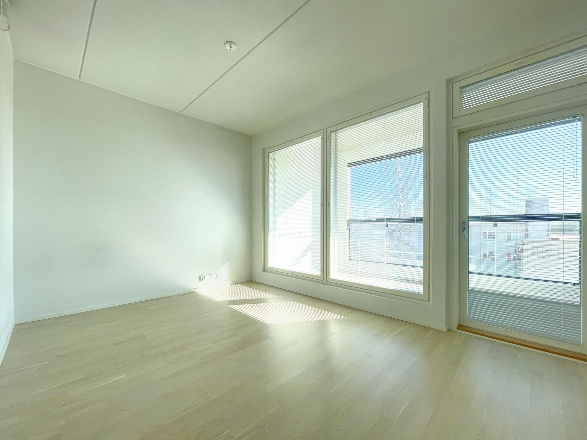 Tässä 4. kerroksen valoisassa kodissa on selkeä pohjaratkaisu ja isot ikkunat tuovat kivasti valoa asuntoon. Avokeittiössä on tilaa työskennellä ja sieltä löytyy kaikki tarvittava mm. astianpesukone arkea helpottamaan. Kaappitilaa löytyy eteisestä. Kylpyhuoneessa on liitäntä pyykkikoneelle. Asunnolla on suuri, n. 12 m2 kokoinen lasitettu parveke etelän suuntaan.